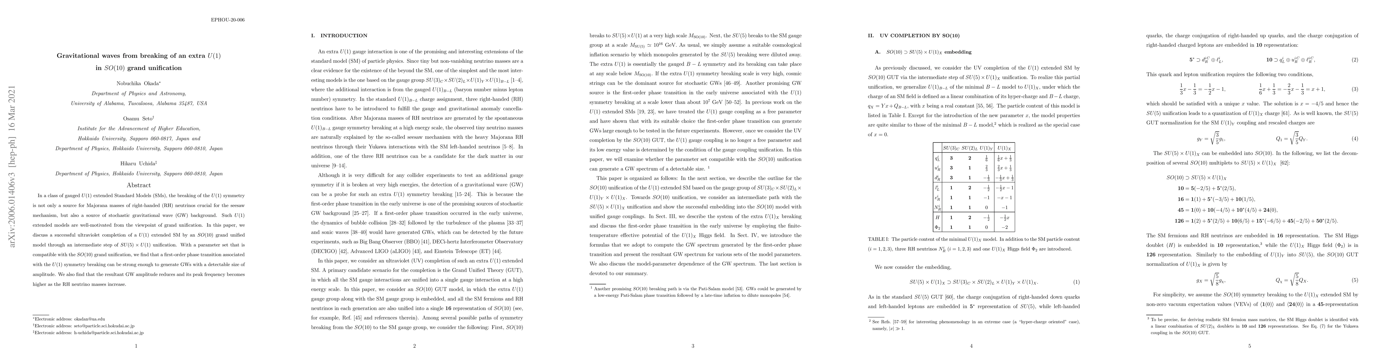 This paper explores a $U(1)$ extended Standard Model within an $SO(10)$ grand unified framework, demonstrating that the breaking of $U(1)$ symmetry can generate detectable gravitational waves, with the amplitude and frequency of these waves dependent on the masses of right-handed neutrinos.
