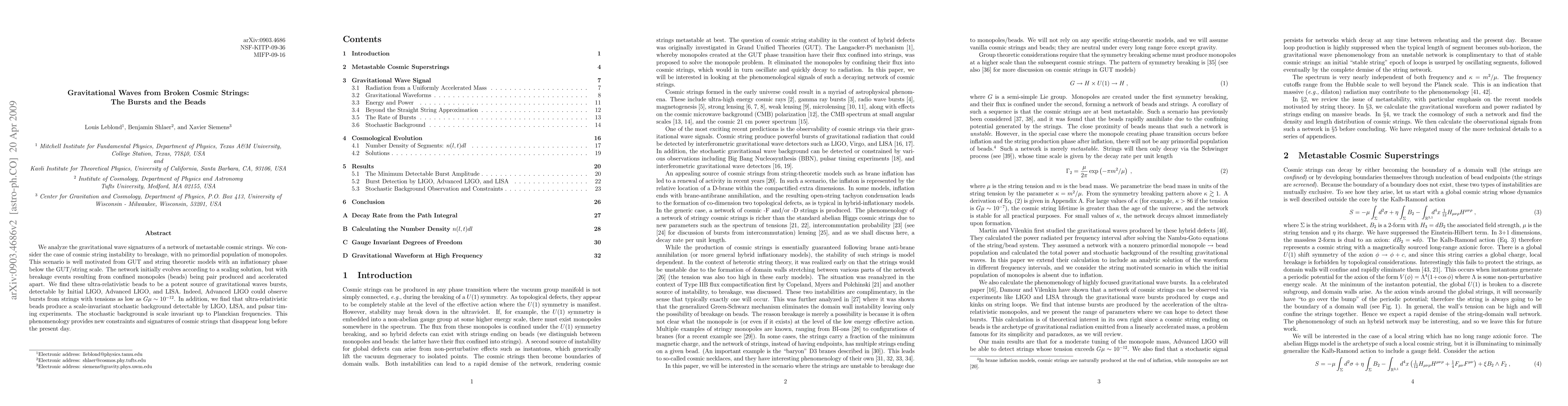We analyze the gravitational wave signatures of a network of metastable cosmic strings. We consider the case of cosmic string instability to breakage, with no primordial population of monopoles. This scenario is well motivated from GUT and string theoretic models with an inflationary phase below the GUT/string scale. The network initially evolves according to a scaling solution, but with breakage events resulting from confined monopoles (beads) being pair produced and accelerated apart. We find these ultra-relativistic beads to be a potent source of gravitational waves bursts, detectable by Initial LIGO, Advanced LIGO, and LISA. Indeed, Advanced LIGO could observe bursts from strings with tensions as low as $G\mu \sim 10^{-12}$. In addition, we find that ultra-relativistic beads produce a scale-invariant stochastic background detectable by LIGO, LISA, and pulsar timing experiments. The stochastic background is scale invariant up to Planckian frequencies. This phenomenology provides new constraints and signatures of cosmic strings that disappear long before the present day.