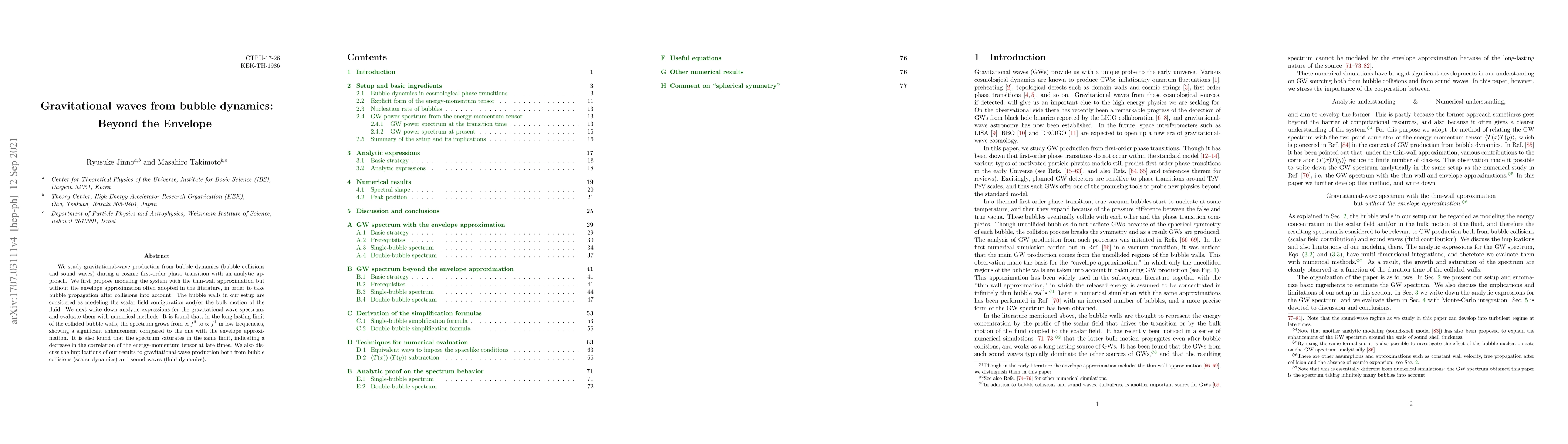 This paper investigates gravitational waves from bubble dynamics during cosmic phase transitions, proposing a thin-wall model without the envelope approximation to better account for bubble propagation post-collision. The study finds a significant enhancement in the gravitational-wave spectrum at low frequencies and a saturation effect, indicating reduced energy-momentum tensor correlation at late times.