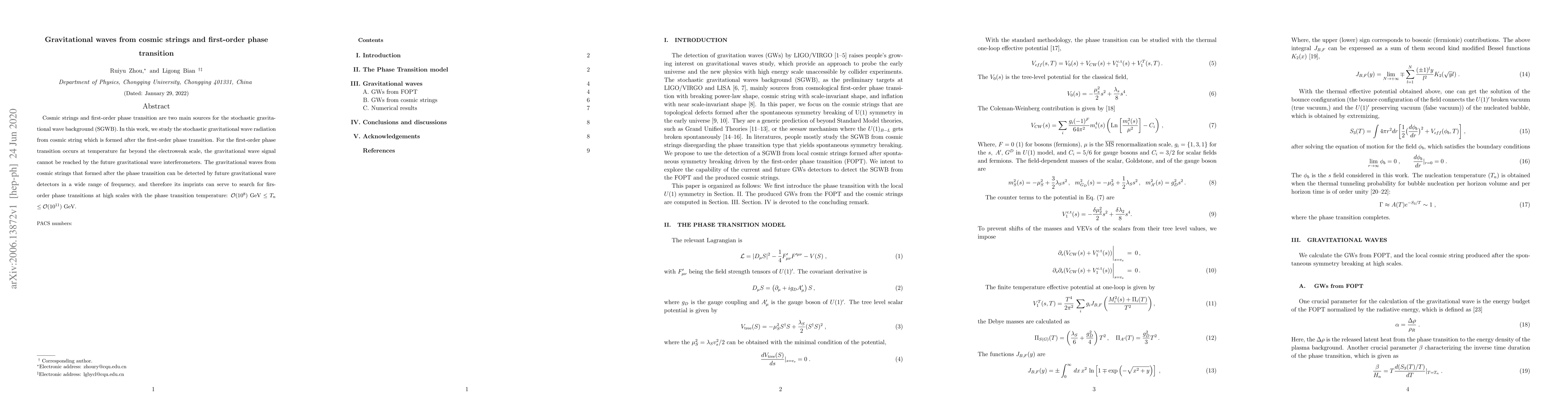 This paper investigates the gravitational waves emitted by cosmic strings formed post a high-temperature first-order phase transition, which cannot be detected by current interferometers. Future gravitational wave detectors could identify these waves across a broad frequency range, thereby providing evidence for first-order phase transitions at temperatures in the range of $10^8$ to $10^{11}$ GeV.