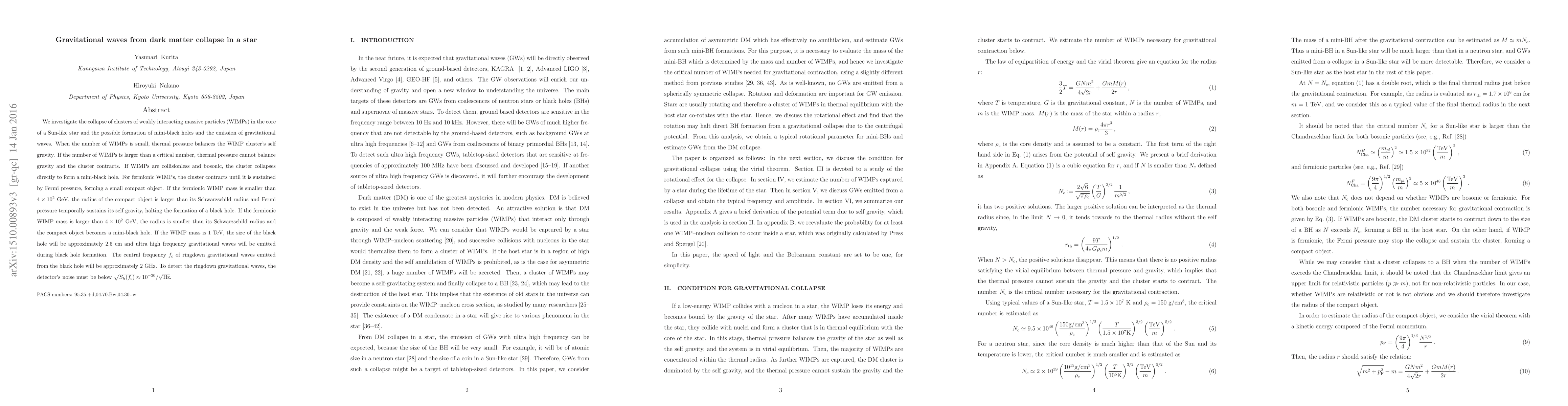 Researchers investigate the collapse of dark matter clusters in a star, predicting possible mini-black hole formation and gravitational wave emission, with potential detection possibilities for ultra-high frequency waves.