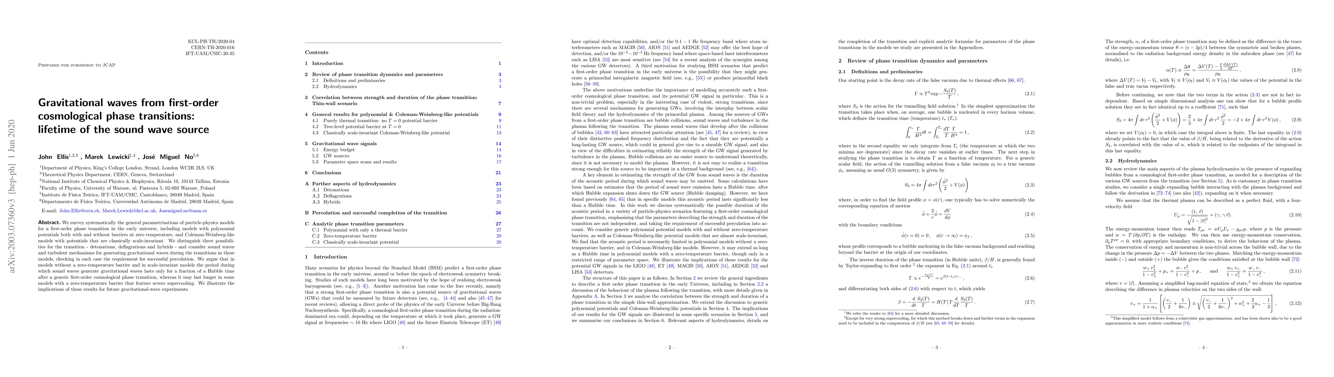 We survey systematically the general parametrisations of particle-physics models for a first-order phase transition in the early universe, including models with polynomial potentials both with and without barriers at zero temperature, and Coleman-Weinberg-like models with potentials that are classically scale-invariant. We distinguish three possibilities for the transition - detonations, deflagrations and hybrids - and consider sound waves and turbulent mechanisms for generating gravitational waves during the transitions in these models, checking in each case the requirement for successful percolation. We argue that in models without a zero-temperature barrier and in scale-invariant models the period during which sound waves generate gravitational waves lasts only for a fraction of a Hubble time after a generic first-order cosmological phase transition, whereas it may last longer in some models with a zero-temperature barrier that feature severe supercooling. We illustrate the implications of these results for future gravitational-wave experiments.