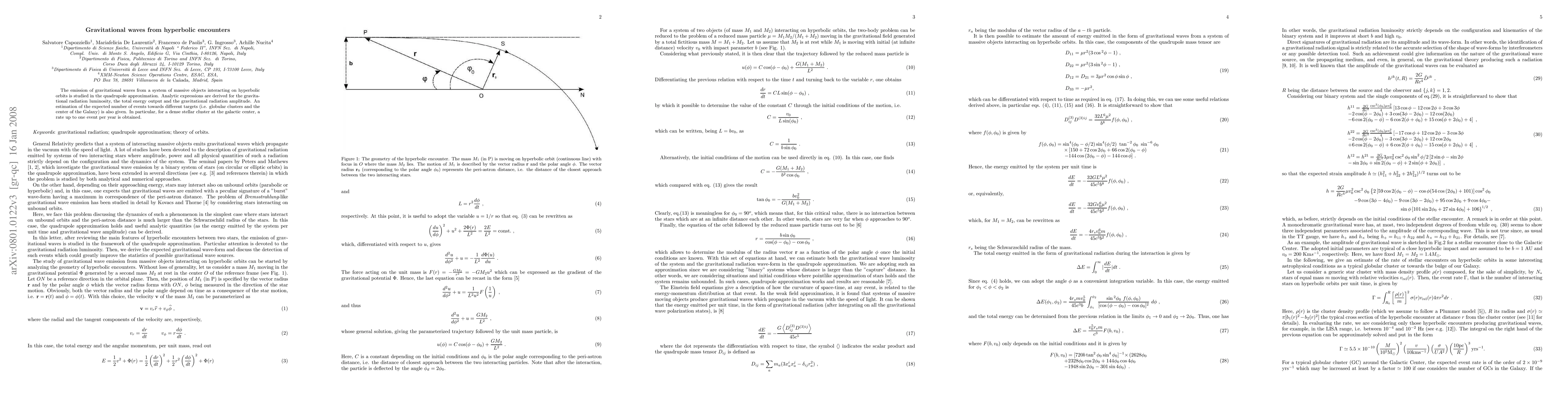 This paper derives analytic expressions for gravitational radiation from hyperbolic encounters in the quadrupole approximation, estimating the luminosity, energy output, and amplitude. It predicts up to one event per year in dense stellar clusters at the galactic center.