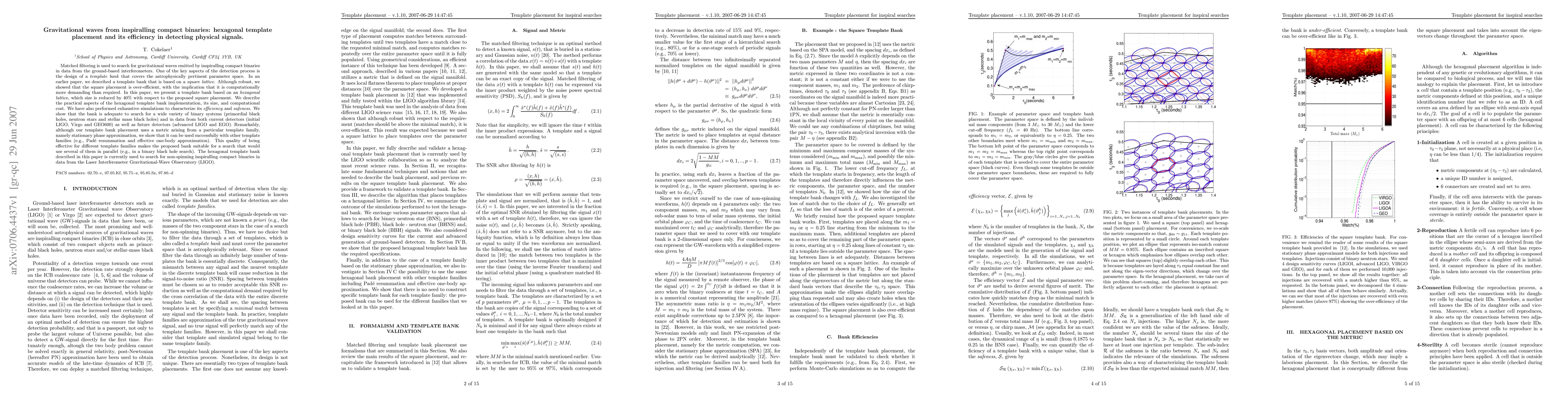 This paper proposes a hexagonal template bank for matched filtering in gravitational wave detection, reducing the template size by 40% compared to a square lattice while maintaining detection efficiency for various compact binaries. The hexagonal template is efficient for different template families and is used in LIGO's search for non-spinning inspiralling binaries.