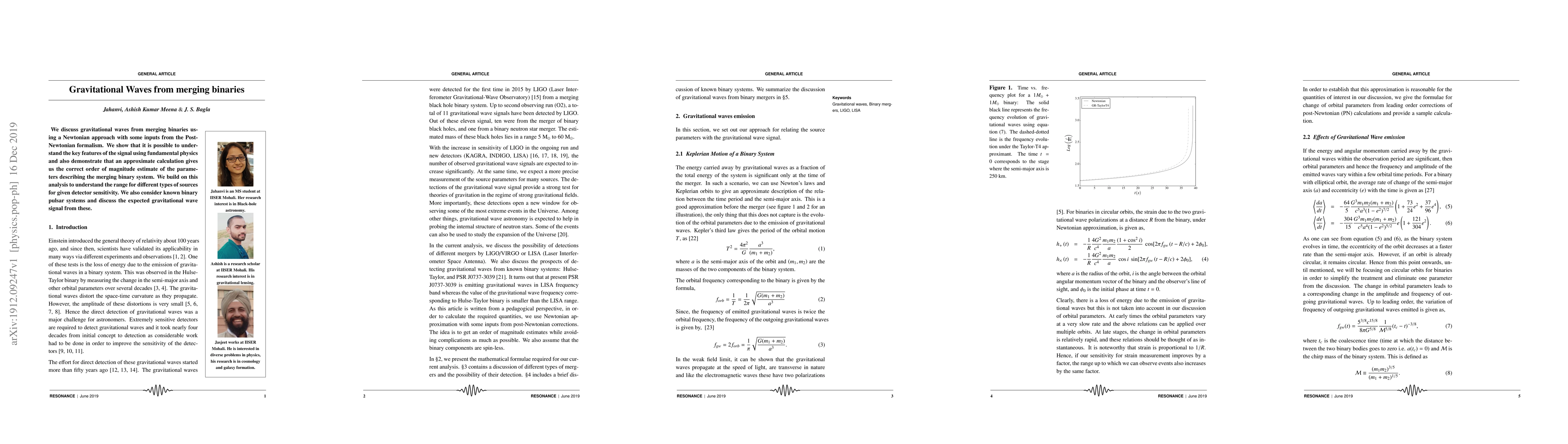 The work presents a simplified analysis of gravitational waves from binary mergers, highlighting key aspects of the expected signal.