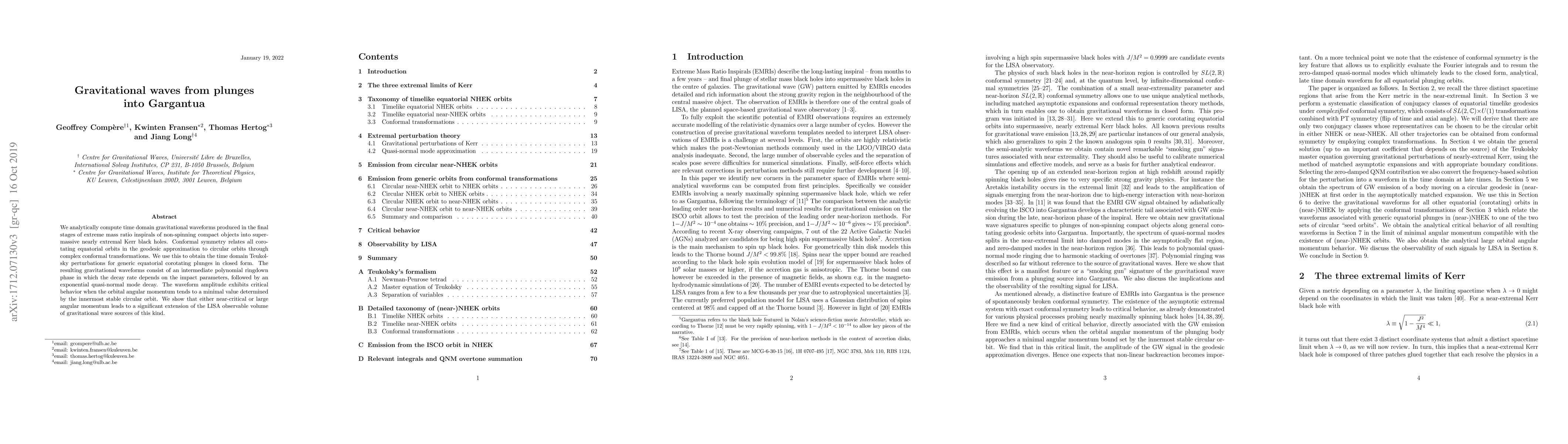 We analytically compute time domain gravitational waveforms produced in the final stages of extreme mass ratio inspirals of non-spinning compact objects into supermassive nearly extremal Kerr black holes. Conformal symmetry relates all corotating equatorial orbits in the geodesic approximation to circular orbits through complex conformal transformations. We use this to obtain the time domain Teukolsky perturbations for generic equatorial corotating plunges in closed form. The resulting gravitational waveforms consist of an intermediate polynomial ringdown phase in which the decay rate depends on the impact parameters, followed by an exponential quasi-normal mode decay. The waveform amplitude exhibits critical behavior when the orbital angular momentum tends to a minimal value determined by the innermost stable circular orbit. We show that either near-critical or large angular momentum leads to a significant extension of the LISA observable volume of gravitational wave sources of this kind.