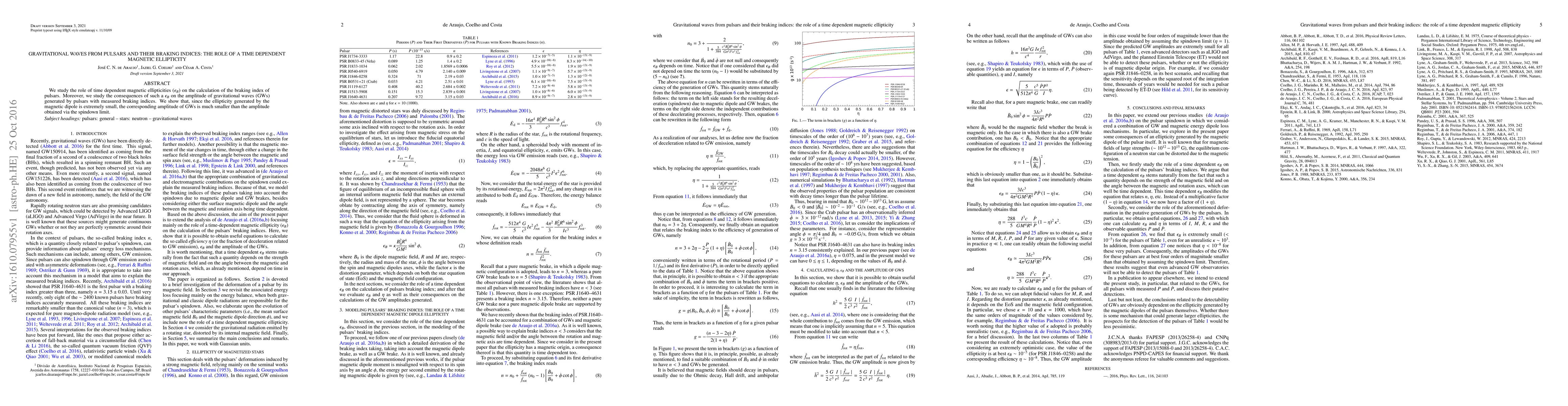 Summary: This paper investigates the impact of time-dependent magnetic ellipticities on pulsar braking indices and gravitational wave amplitudes. It concludes that the small magnetic dipole-induced ellipticity results in negligible gravitational wave amplitudes compared to the spindown limit.