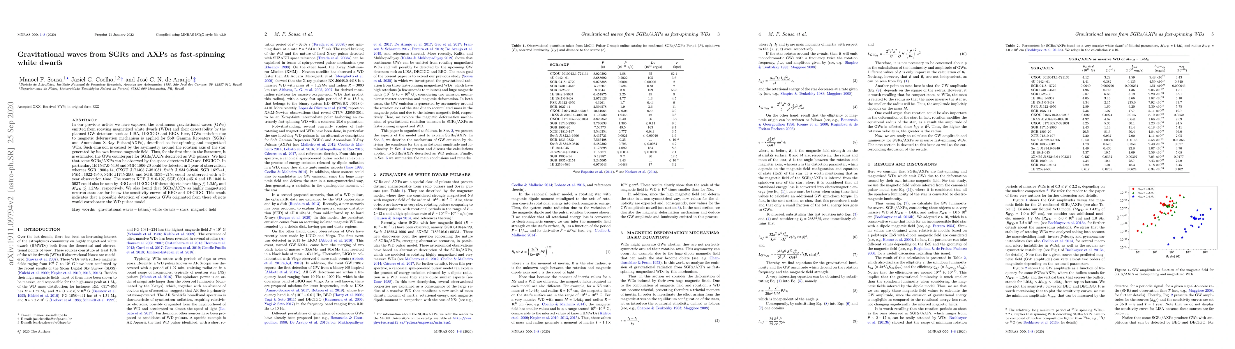 This paper estimates gravitational wave emission from Soft Gamma Repeaters (SGRs) and Anomalous X-Ray Pulsars (AXPs) as fast-spinning magnetized white dwarfs, predicting that some of these objects could be detected by space-based detectors like BBO and DECIGO. It suggests that detection would support the white dwarf pulsar model for these objects.