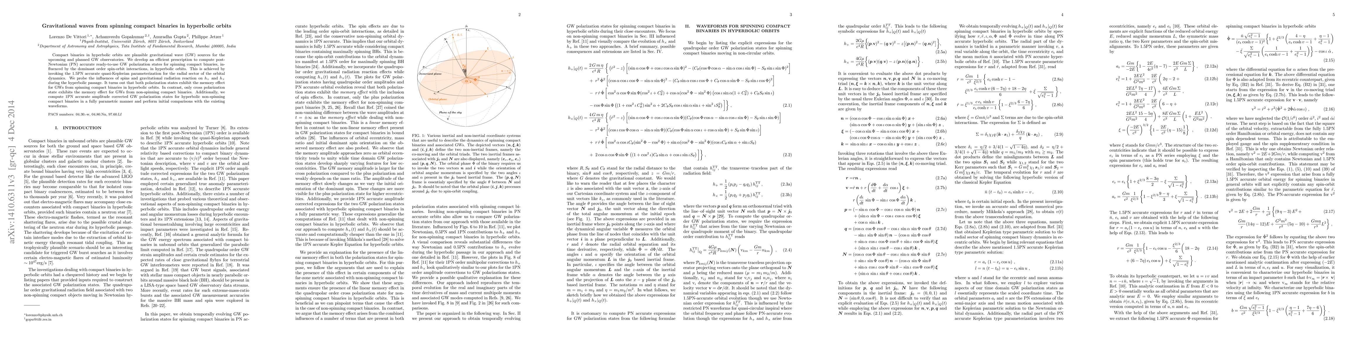 Compact binaries in hyperbolic orbits are plausible gravitational wave (GW) sources for the upcoming and planned GW observatories. We develop an efficient prescription to compute post-Newtonian (PN) accurate ready-to-use GW polarization states for spinning compact binaries, influenced by the dominant order spin-orbit interactions, in hyperbolic orbits. This is achieved by invoking the 1.5PN accurate quasi-Keplerian parameterization for the radial sector of the orbital dynamics. We probe the influences of spins and gravitational radiation reaction on $h_+$ and $h_{\times}$ during the hyperbolic passage. It turns out that both polarization states exhibit the memory effect for GWs from spinning compact binaries in hyperbolic orbits. In contrast, only cross polarization state exhibits the memory effect for GWs from non-spinning compact binaries. Additionally, we compute 1PN accurate amplitude corrected GW polarization states for hyperbolic non-spinning compact binaries in a fully parametric manner and perform initial comparisons with the existing waveforms.