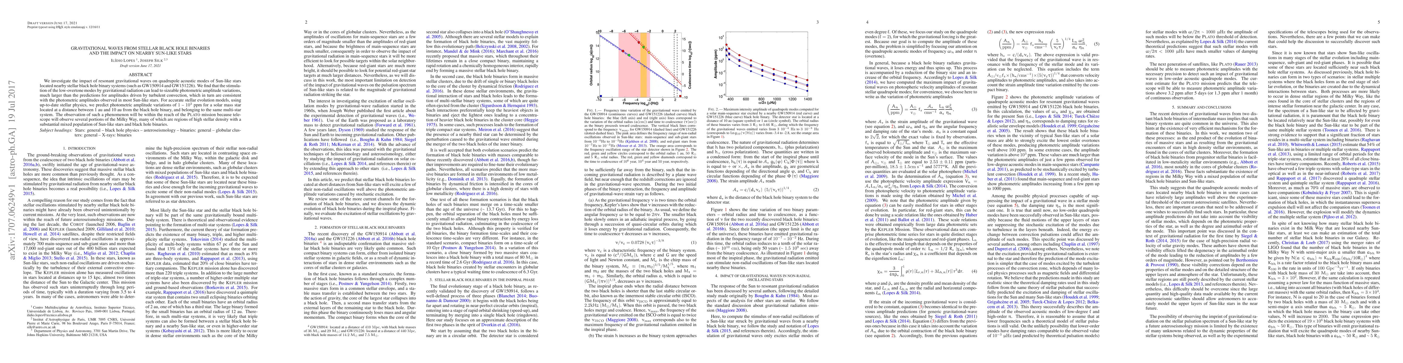 Gravitational waves from stellar black hole binaries stimulate quadrupole acoustic modes in nearby Sun-like stars, causing large photometric amplitude variations. Observations of these effects could be detected by the Plato mission.