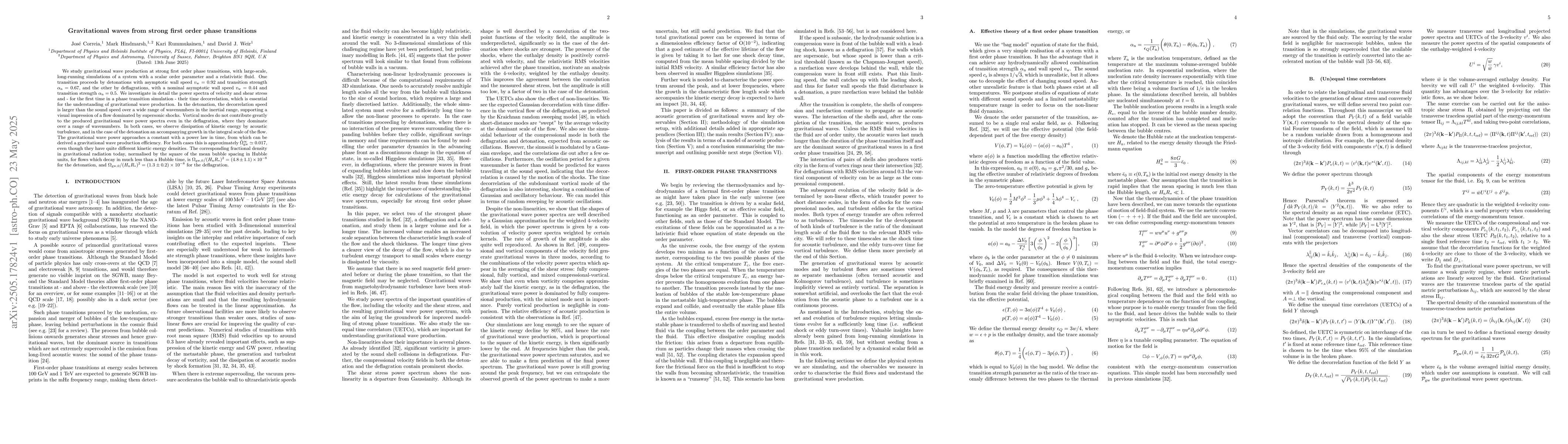Researchers simulate strong first-order phase transitions to study gravitational wave production, finding that both detonations and deflagrations produce significant gravitational waves with efficiency rates similar to 0.017.