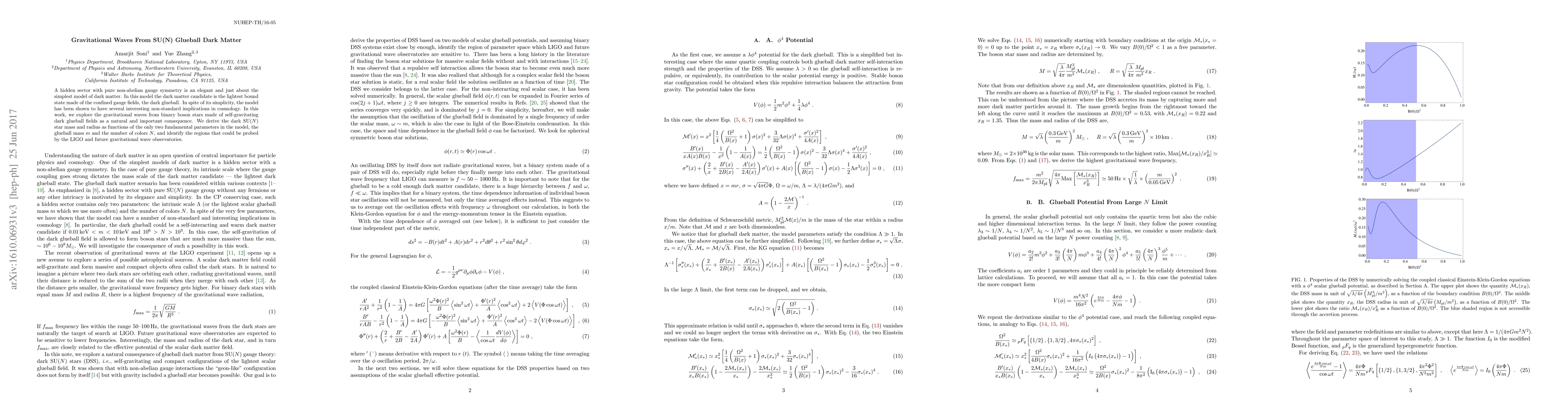 A hidden sector with pure non-abelian gauge symmetry is an elegant and just about the simplest model of dark matter. In this model the dark matter candidate is the lightest bound state made of the confined gauge fields, the dark glueball. In spite of its simplicity, the model has been shown to have several interesting non-standard implications in cosmology. In this work, we explore the gravitational waves from binary boson stars made of self-gravitating dark glueball fields as a natural and important consequence. We derive the dark SU($N$) star mass and radius as functions of the only two fundamental parameters in the model, the glueball mass $m$ and the number of colors $N$, and identify the regions that could be probed by the LIGO and future gravitational wave observatories.