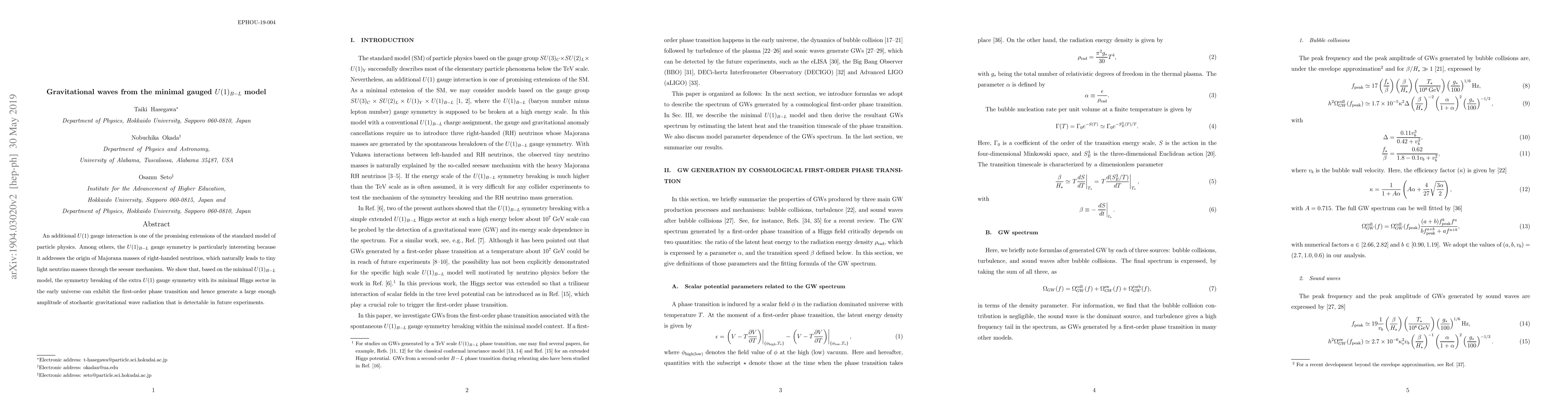 This paper explores the gravitational wave signals from the minimal gauged $U(1)_{B-L}$ model, demonstrating that its symmetry breaking in the early Universe can lead to a first-order phase transition, generating detectable stochastic gravitational waves in future experiments.
