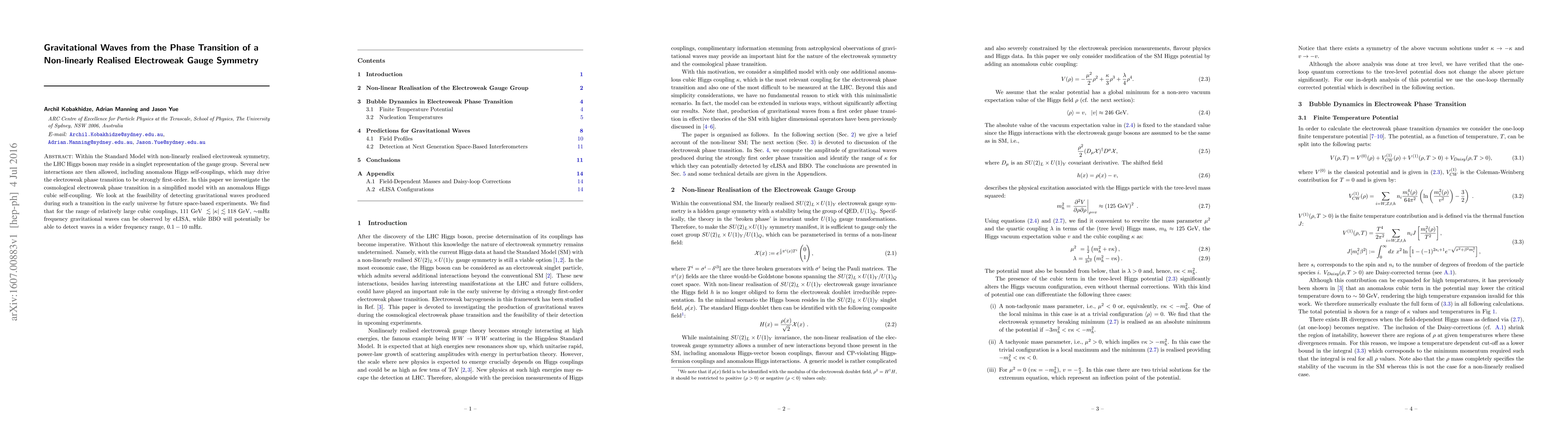This paper explores the gravitational waves produced during a strongly first-order electroweak phase transition driven by anomalous Higgs self-couplings in a non-linearly realised electroweak symmetry model. It finds that future space-based experiments like eLISA and BBO could detect these waves in the mHz frequency range.