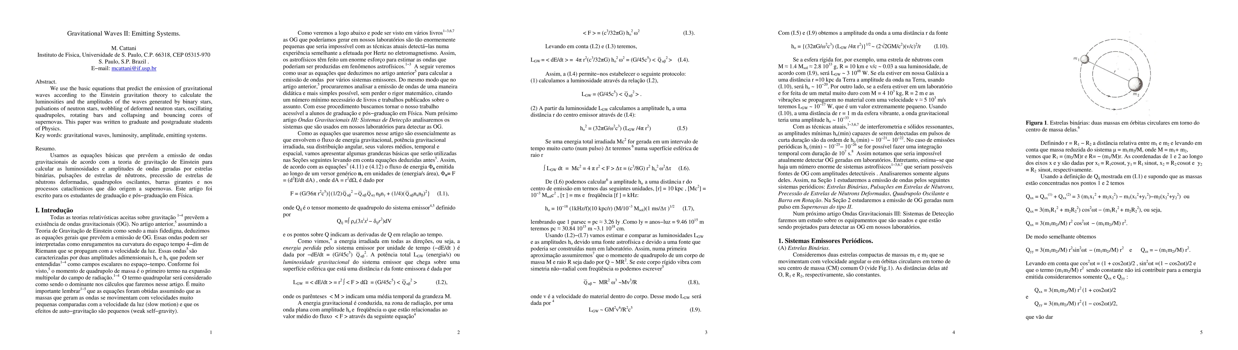 We use the basic equations that predict the emission of gravitational waves according to the Einstein gravitation theory to calculate the luminosities and the amplitudes of the waves generated by binary stars, pulsations of neutron stars, wobbling of deformed neutron stars, oscillating quadrupoles, rotating bars and collapsing and bouncing cores of supernovas. This paper was written to graduate and postgraduate students of Physics.