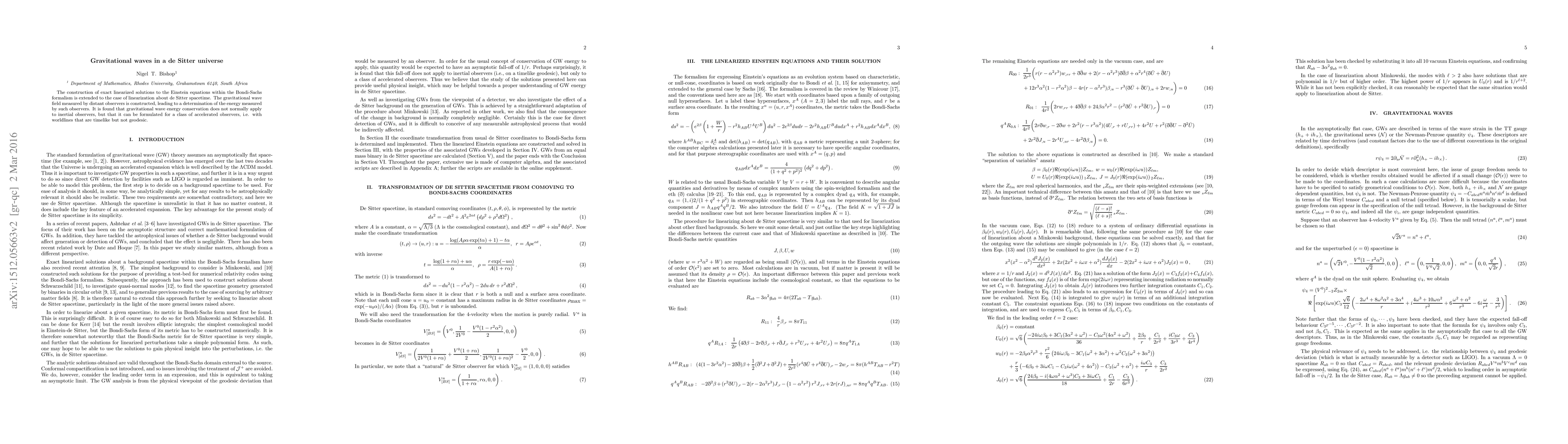 Researchers extend Bondi-Sachs formalism to de Sitter spacetime to construct gravitational wave fields measured by distant observers, finding that energy conservation does not apply to inertial observers but can be formulated for accelerated observers.