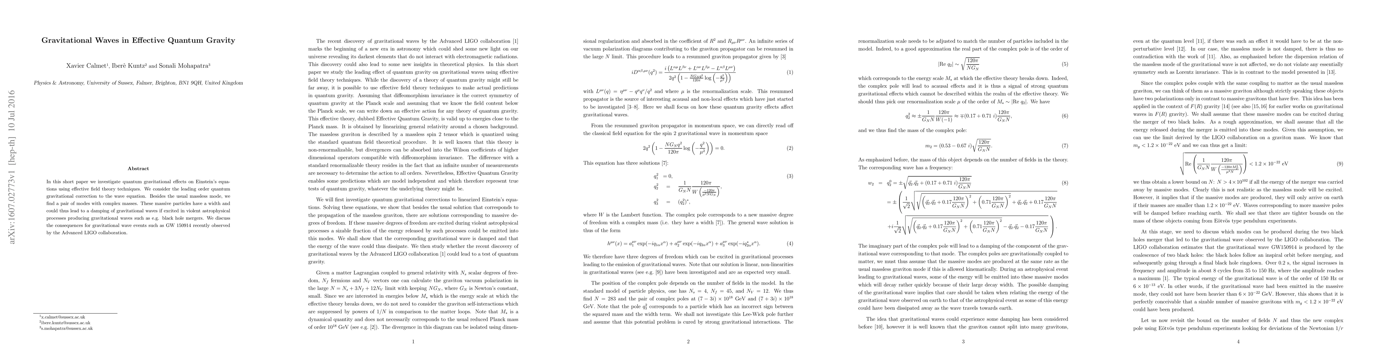 In this short paper we investigate quantum gravitational effects on Einstein's equations using effective field theory techniques. We consider the leading order quantum gravitational correction to the wave equation. Besides the usual massless mode, we find a pair of modes with complex masses. These massive particles have a width and could thus lead to a damping of gravitational waves if excited in violent astrophysical processes producing gravitational waves such as e.g. black hole mergers. We discuss the consequences for gravitational wave events such as GW 150914 recently observed by the Advanced LIGO collaboration.