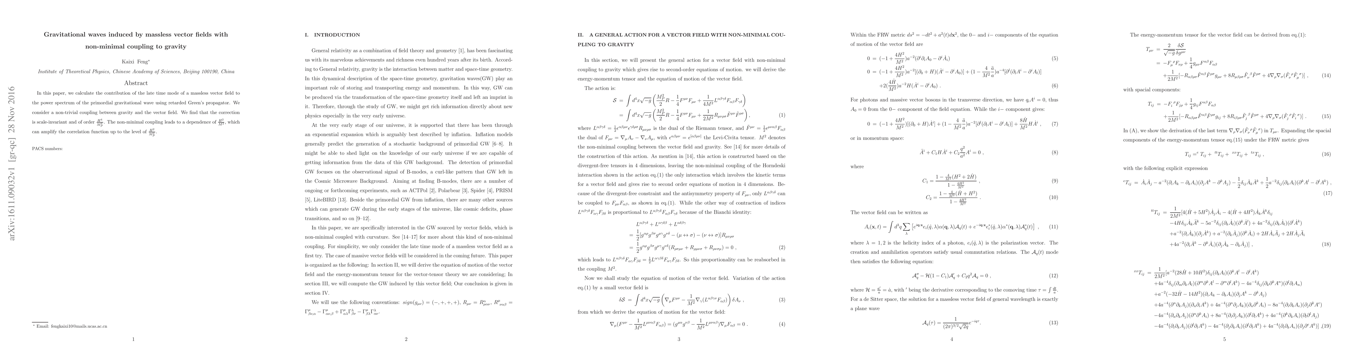 In this paper, we calculate the contribution of the late time mode of a massless vector field to the power spectrum of the primordial gravitational wave using retarded Green's propagator. We consider a non-trivial coupling between gravity and the vector field. We find that the correction is scale-invariant and of order $\frac{H^4}{M_P^4}$. The non-minimal coupling leads to a dependence of $\frac{H^2}{M^2}$, which can amplify the correlation function up to the level of $\frac{H^2}{M^2_P}$.