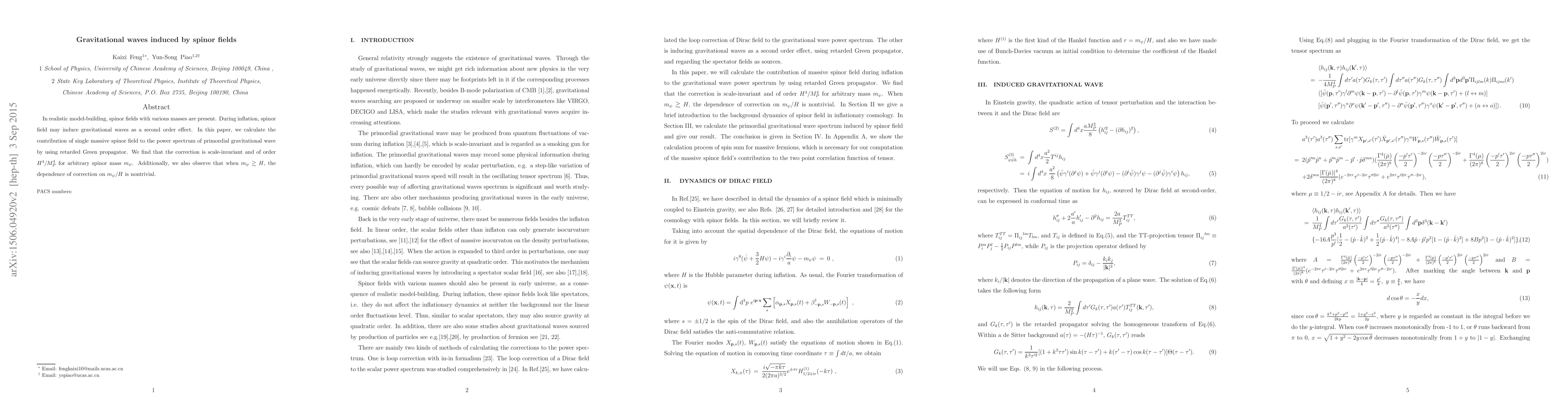 This paper calculates the gravitational wave contribution from a single massive spinor field during inflation, finding a scale-invariant correction to the primordial gravitational wave power spectrum. The correction is of order $H^4/M_P^4$, and for masses where $m_\psi \gtrsim H$, the dependence on $m_\psi/H$ becomes nontrivial.
