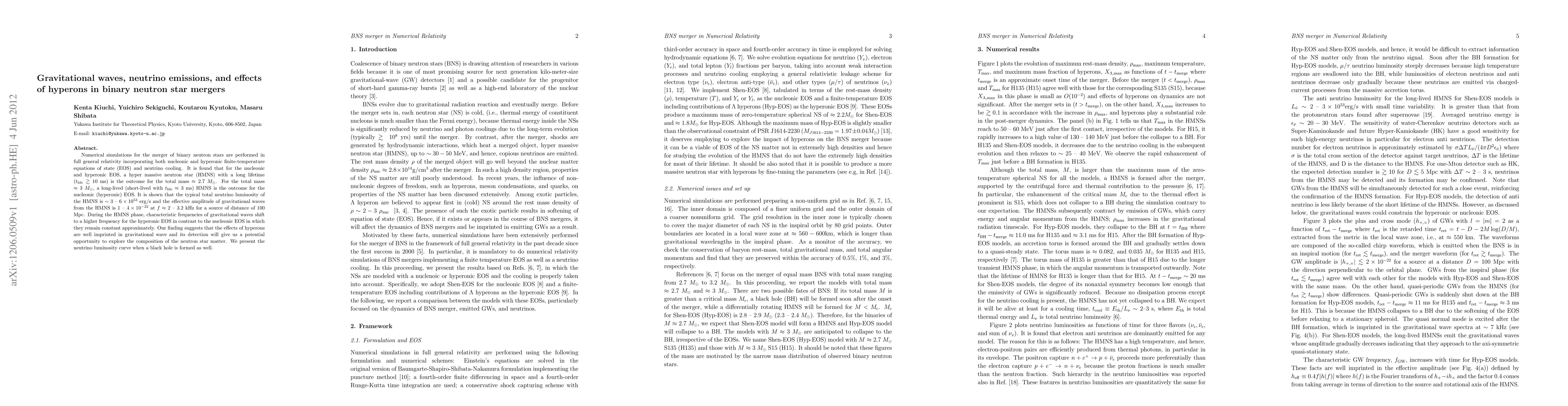 Numerical simulations predict that binary neutron star mergers can create hyper massive neutron stars (HMNS) with long lifetimes, emitting large neutrino luminosities detectable through gravitational waves.