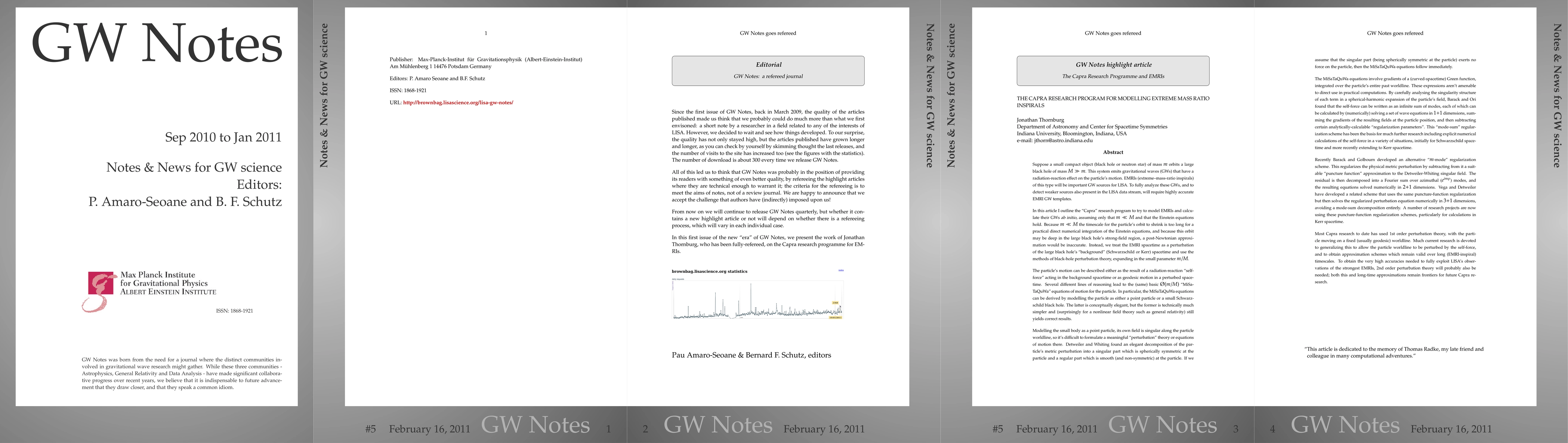 GW Notes was born from the need for a journal where the distinct communities involved in gravitation wave research might gather. While these three communities - astrophysics, general relativity and data analysis - have made significant collaborative progress over recent years, we believe that it is indispensable to future advancement that they draw closer, and that they speak a common idiom. In this 6th GW Note (since we started numbering with #0), we present the work of Jonathan Thornburg, who has been fully-refereed, on the Capra research programme for capture of small compact objects by massive black holes.