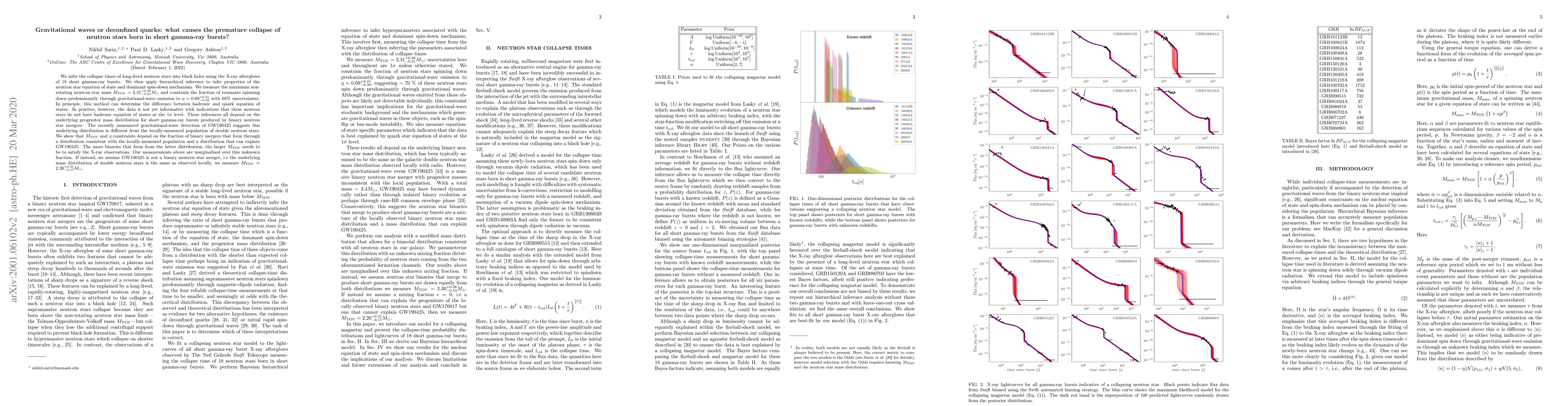 We infer the collapse times of long-lived neutron stars into black holes using the X-ray afterglows of 18 short gamma-ray bursts. We then apply hierarchical inference to infer properties of the neutron star equation of state and dominant spin-down mechanism. We measure the maximum non-rotating neutron star mass $M_\mathrm{TOV} = 2.31 ^{+0.36}_{-0.21} M_{\odot}$ and constrain the fraction of remnants spinning down predominantly through gravitational-wave emission to $\eta = 0.69 ^{+0.21}_{-0.39}$ with $68 \%$ uncertainties. In principle, this method can determine the difference between hadronic and quark equation of states. In practice, however, the data is not yet informative with indications that these neutron stars do not have hadronic equation of states at the $1\sigma$ level. These inferences all depend on the underlying progenitor mass distribution for short gamma-ray bursts produced by binary neutron star mergers. The recently announced gravitational-wave detection of GW190425 suggests this underlying distribution is different from the locally-measured population of double neutron stars. We show that $M_\mathrm{TOV}$ and $\eta$ constraints depend on the fraction of binary mergers that form through a distribution consistent with the locally-measured population and a distribution that can explain GW190425. The more binaries that form from the latter distribution, the larger $M_\mathrm{TOV}$ needs to be to satisfy the X-ray observations. Our measurements above are marginalised over this unknown fraction. If instead, we assume GW190425 is not a binary neutron star merger, i.e the underlying mass distribution of double neutron stars is the same as observed locally, we measure $M_\mathrm{TOV} = 2.26 ^{+0.31}_{-0.17} M_{\odot}$.