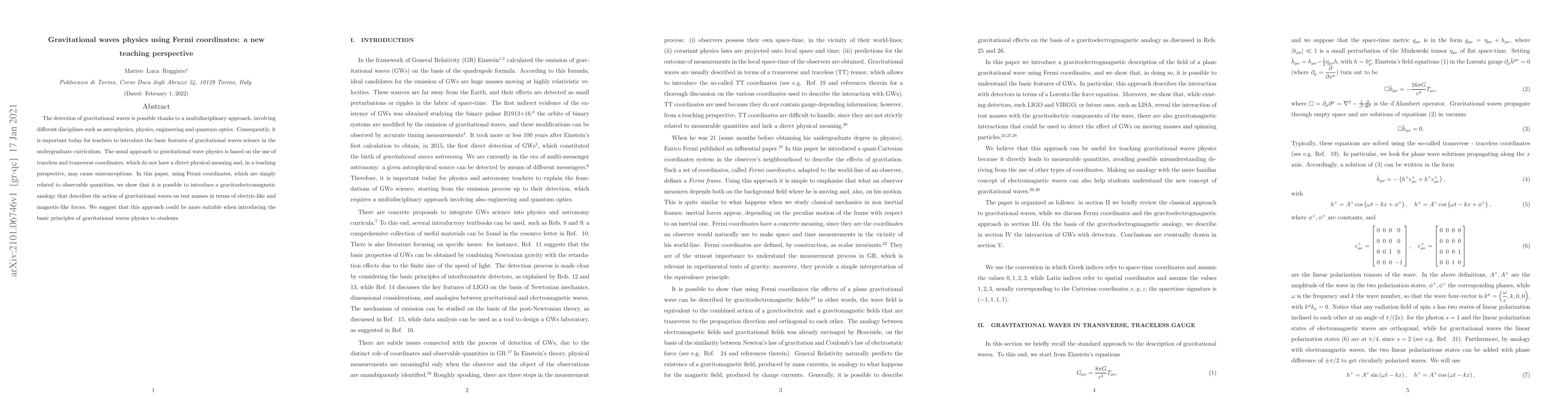 Researchers introduce a new teaching perspective using Fermi coordinates to explain gravitational waves physics, offering an alternative approach that simplifies the concept and reduces potential misconceptions.