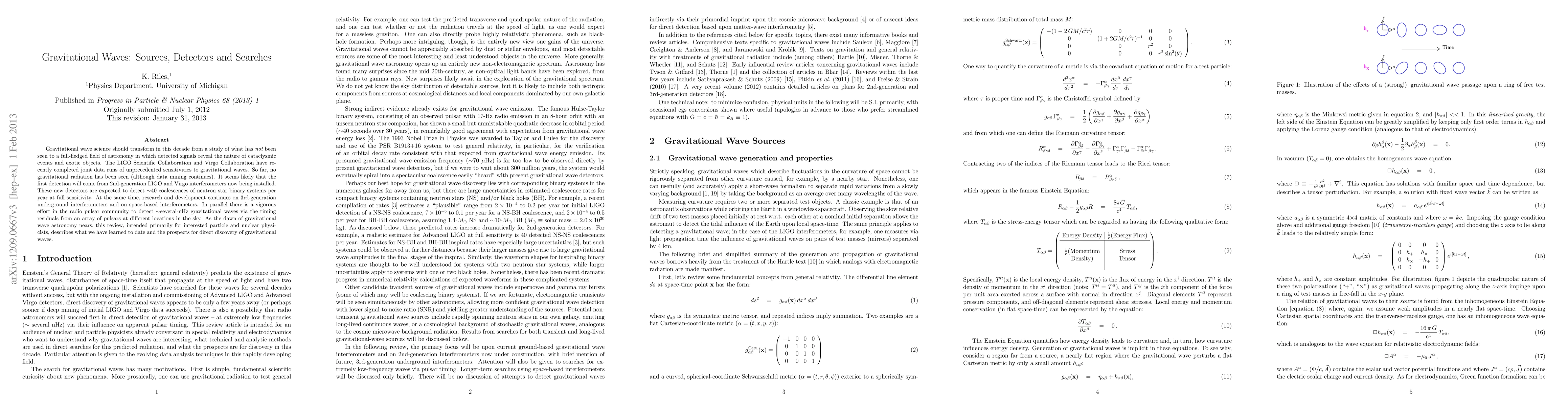 Gravitational wave science should transform in this decade from a study of what has not been seen to a full-fledged field of astronomy in which detected signals reveal the nature of cataclysmic events and exotic objects. The LIGO Scientific Collaboration and Virgo Collaboration have recently completed joint data runs of unprecedented sensitivities to gravitational waves. So far, no gravitational radiation has been seen (although data mining continues). It seems likely that the first detection will come from 2nd-generation LIGO and Virgo interferometers now being installed. These new detectors are expected to detect ~40 coalescences of neutron star binary systems per year at full sensitivity. At the same time, research and development continues on 3rd-generation underground interferometers and on space-based interferometers. In parallel there is a vigorous effort in the radio pulsar community to detect ~several-nHz gravitational waves via the timing residuals from an array of pulsars at different locations in the sky. As the dawn of gravitational wave astronomy nears, this review, intended primarily for interested particle and nuclear physicists, describes what we have learned to date and the prospects for direct discovery of gravitational waves.