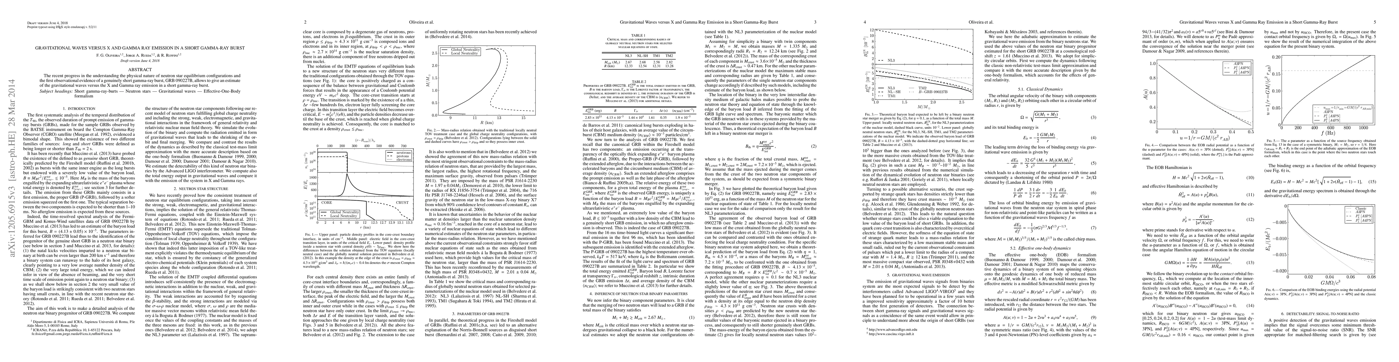 The recent progress in the understanding the physical nature of neutron star equilibrium configurations and the first observational evidence of a genuinely short gamma-ray burst, GRB 090227B, allows to give an estimate of the gravitational waves versus the X and Gamma-ray emission in a short gamma-ray burst.