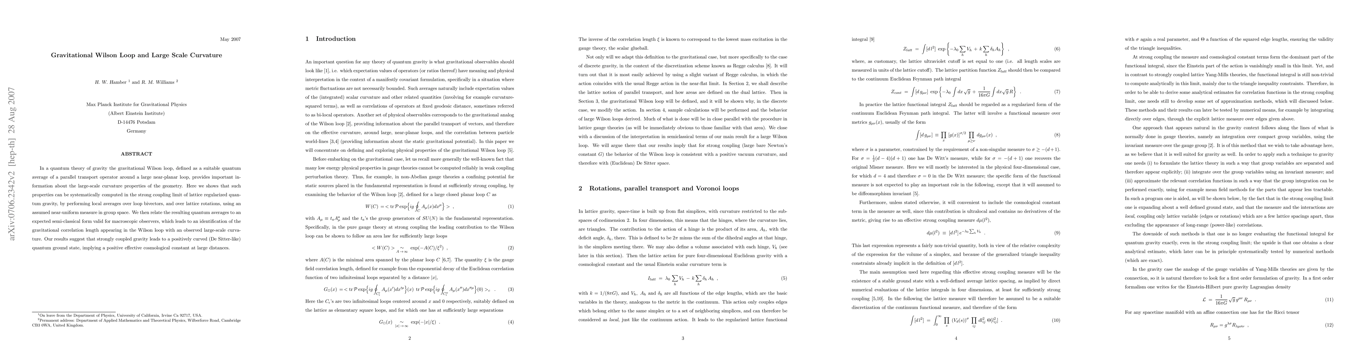 This paper demonstrates that gravitational Wilson loops in lattice quantum gravity reveal large-scale curvature properties, showing a strong coupling limit leads to a positively curved quantum ground state, suggesting a positive effective cosmological constant at macroscopic scales.