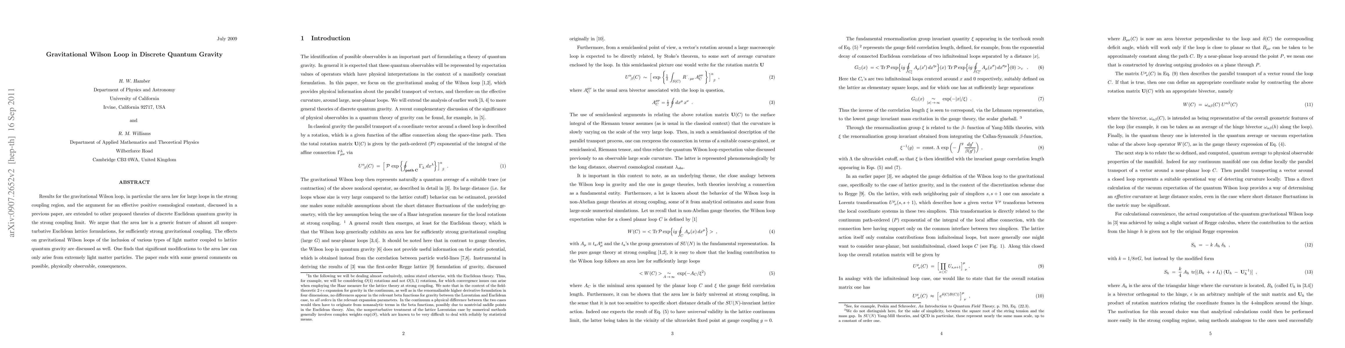 Results for the gravitational Wilson loop, in particular the area law for large loops in the strong coupling region, and the argument for an effective positive cosmological constant discussed in a previous paper, are extended to other proposed theories of discrete quantum gravity in the strong coupling limit. We argue that the area law is a generic feature of almost all non-perturbative lattice formulations, for sufficiently strong gravitational coupling. The effects on gravitational Wilson loops of the inclusion of various types of light matter coupled to lattice quantum gravity are discussed as well. One finds that significant modifications to the area law can only arise from extremely light matter particles. The paper ends with some general comments on possible physically observable consequences.