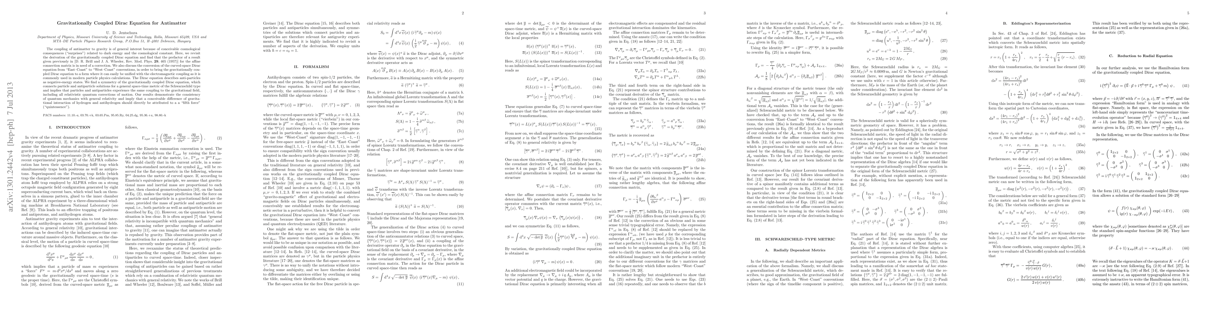The development of a new mathematical framework for describing the gravitational coupling of particles and antiparticles, which provides a consistent and coherent description of their behavior in various physical contexts