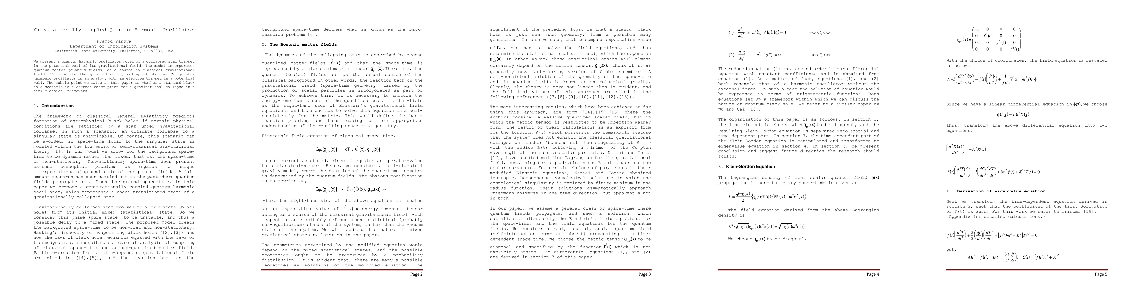 This paper models a gravitationally collapsed star as a quantum harmonic oscillator, comparing it to an electron in a potential well, and questions whether the standard black hole scenario accurately describes gravitational collapse in a semi-classical framework.