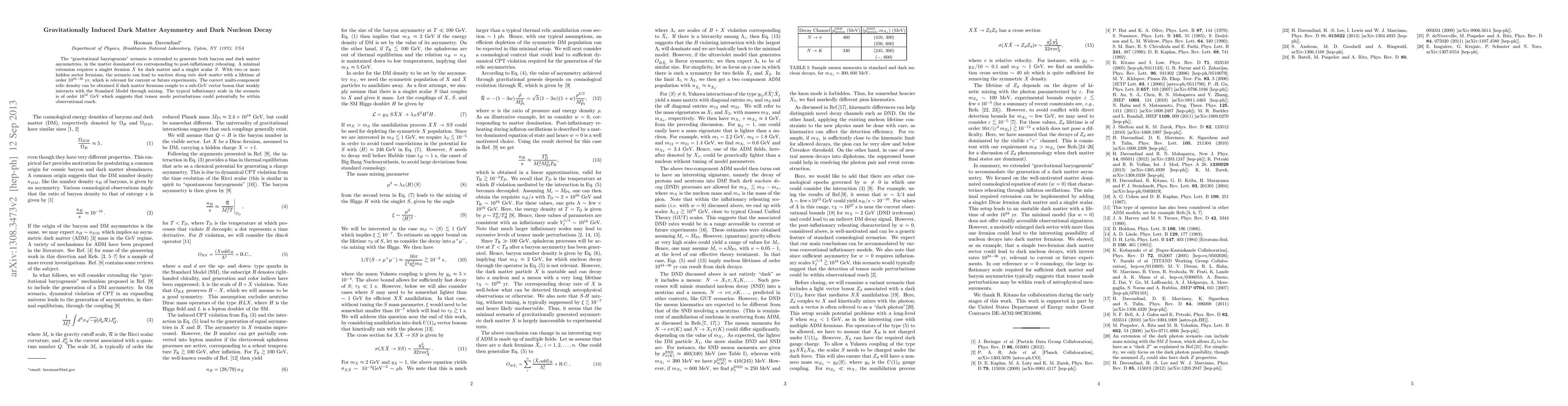 A new scenario extends gravitational baryogenesis to generate both baryon and dark matter asymmetries, predicting a lifetime of 10^34-36 years for nucleon decay into dark matter.