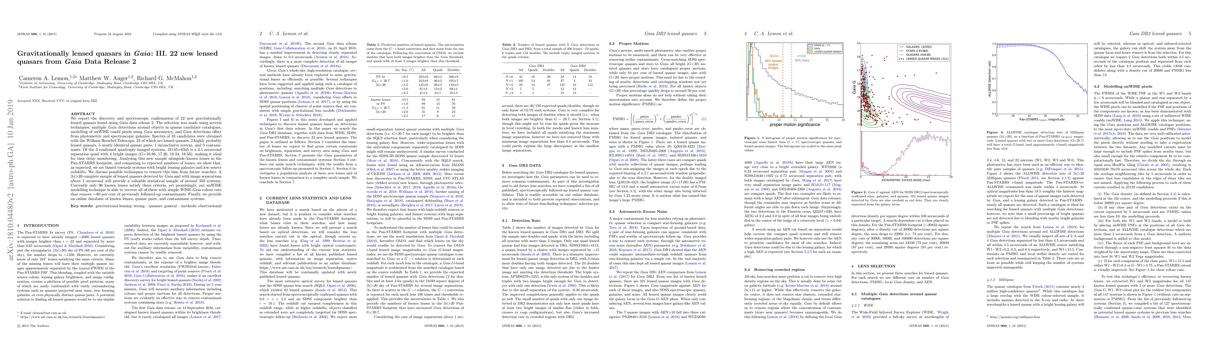 We report the discovery and spectroscopic confirmation of 22 new gravitationally lensed quasars found using $\textit{Gaia}$ data release 2. The selection was made using several techniques: multiple $\textit{Gaia}$ detections around objects in quasar candidate catalogues, modelling of unWISE coadd pixels using $\textit{Gaia}$ astrometry, and $\textit{Gaia}$ detections offset from photometric and spectroscopic galaxies. Spectra of 33 candidates were obtained with the William Herschel Telescope, 22 of which are lensed quasars, 2 highly probably lensed quasars, 5 nearly identical quasar pairs, 1 inconclusive system, and 3 contaminants. Of the 3 confirmed quadruply imaged systems, J2145+6345 is a 2.1 arcsecond separation quad with 4 bright images ($G$=16.86, 17.26, 18.34, 18.56), making it ideal for time delay monitoring. Analysing this new sample alongside known lenses in the Pan-STARRS footprint, and comparing to expected numbers of lenses, we show that, as expected, we are biased towards systems with bright lensing galaxies and low source redshifts. We discuss possible techniques to remove this bias from future searches. A |b|>20 complete sample of lensed quasars detected by $\textit{Gaia}$ and with image separations above 1 arcsecond will provide a valuable statistical sample of around 350 systems. Currently only 96 known lenses satisfy these criteria, yet promisingly, our unWISE modelling technique is able to recover all of these with simple WISE-$\textit{Gaia}$ colour cuts that remove $\sim$80 per cent of previously followed-up contaminants. Finally, we provide an online database of known lenses, quasar pairs, and contaminant systems.