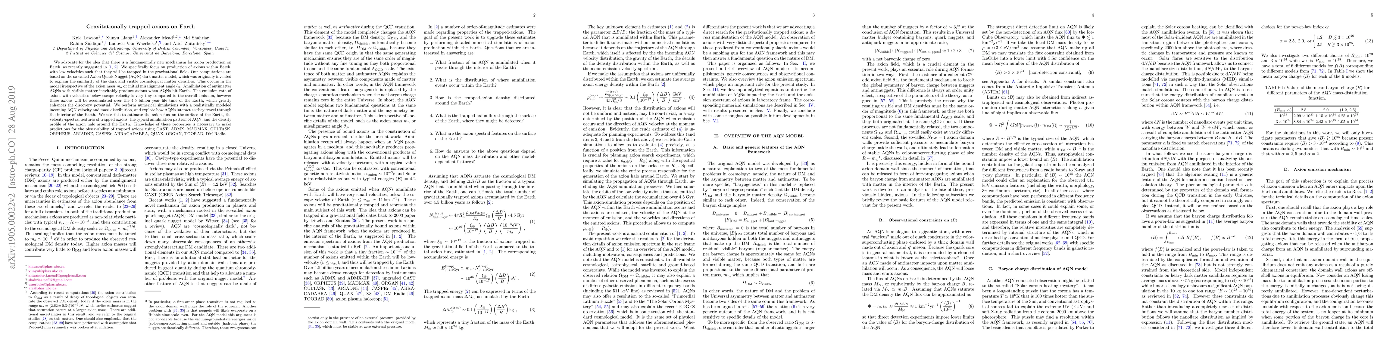 We advocate for the idea that there is a fundamentally new mechanism for axion production on Earth, as recently suggested in Fischer et al. (2018) and Liang & Zhitnitsky (2018). We specifically focus on production of axions within Earth, with low velocities such that they will be trapped in the gravitational field. Our computations are based on the so-called Axion Quark Nugget (AQN) dark matter model, which was originally invented to explain the similarity of the dark and visible cosmological matter densities. This occurs in the model irrespective of the axion mass $m_\mathrm{a}$ or initial misalignment angle $\theta_0$. Annihilation of antimatter AQNs with visible matter inevitably produce axions when AQNs hit Earth. The emission rate of axions with velocities below escape velocity is very tiny compared to the overall emission, however these axions will be accumulated over the 4.5 billion year life time of the Earth, which greatly enhances the discovery potential. We perform numerical simulations with a realistically modeled incoming AQN velocity and mass distribution, and explore how AQNs interact as they travel through the interior of the Earth. We use this to estimate the axion flux on the surface of the Earth, the velocity-spectral features of trapped axions, the typical annihilation pattern of AQN, and the density profile of the axion halo around the Earth. Knowledge of these properties is necessary to make predictions for the observability of trapped axions using CAST, ADMX, MADMAX, CULTASK, ORPHEUS, ARIADNE, CASPEr, ABRACADABRA, QUAX, DM Radio.