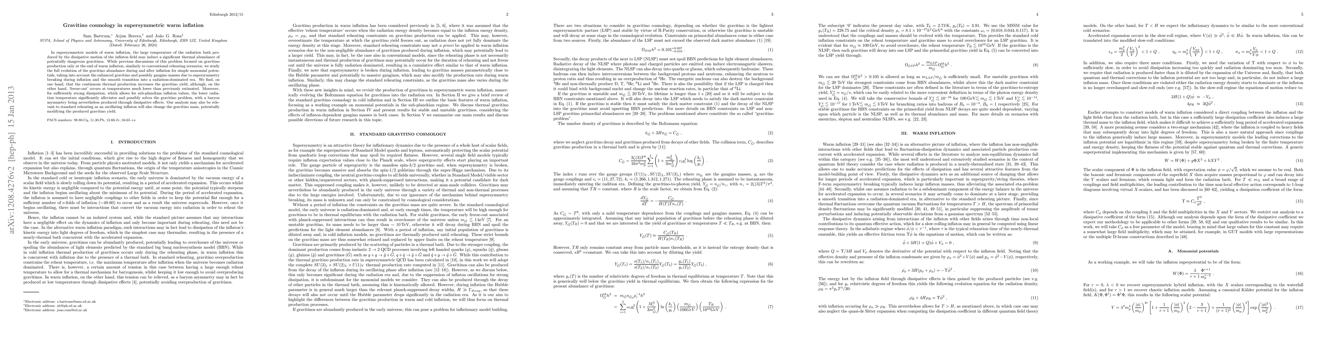 This paper investigates gravitino abundance in supersymmetric warm inflation, finding that continuous thermal production during and after inflation increases the gravitino yield but lowers "freeze-out" temperatures. Strong dissipation can alleviate the gravitino problem by lowering radiation temperatures, while still generating a baryon asymmetry.