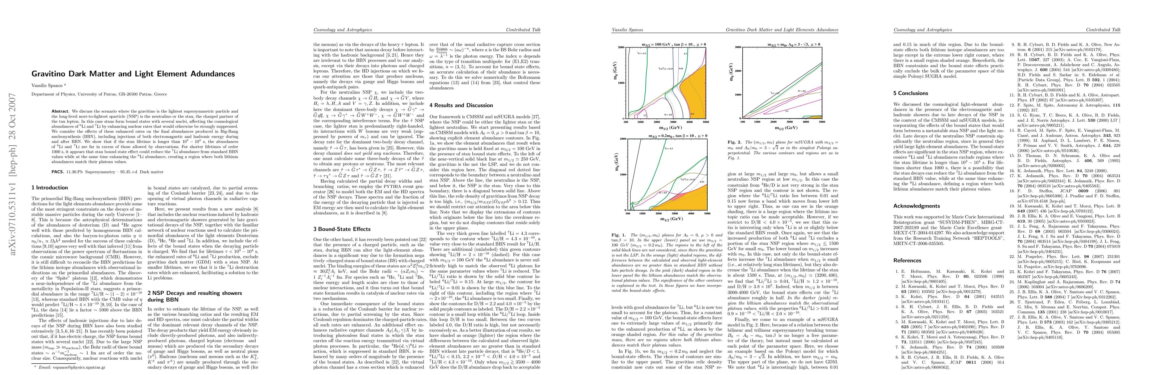 We discuss the scenario where the gravitino is the lightest supersymmetric particle and the long-lived next-to-lightest sparticle (NSP) is the neutralino or the stau, the charged partner of the tau lepton. In this case staus form bound states with several nuclei, affecting the cosmological abundances of Li6 and Li7 by enhancing nuclear rates that would otherwise be strongly suppressed. We consider the effects of these enhanced rates on the final abundances produced in Big-Bang nucleosynthesis (BBN), including injections of both electromagnetic and hadronic energy during and after BBN. We show that if the stau lifetime is longer than 10^3-10^4 s, the abundances of Li6 and Li7 are far in excess of those allowed by observations. For shorter lifetimes of order 1000 s, it appears that stau bound state effect could reduce the Li7 abundance from standard BBN values while at the same time enhancing the Li6 abundance, creating a region where both lithium abundances match their plateau values.