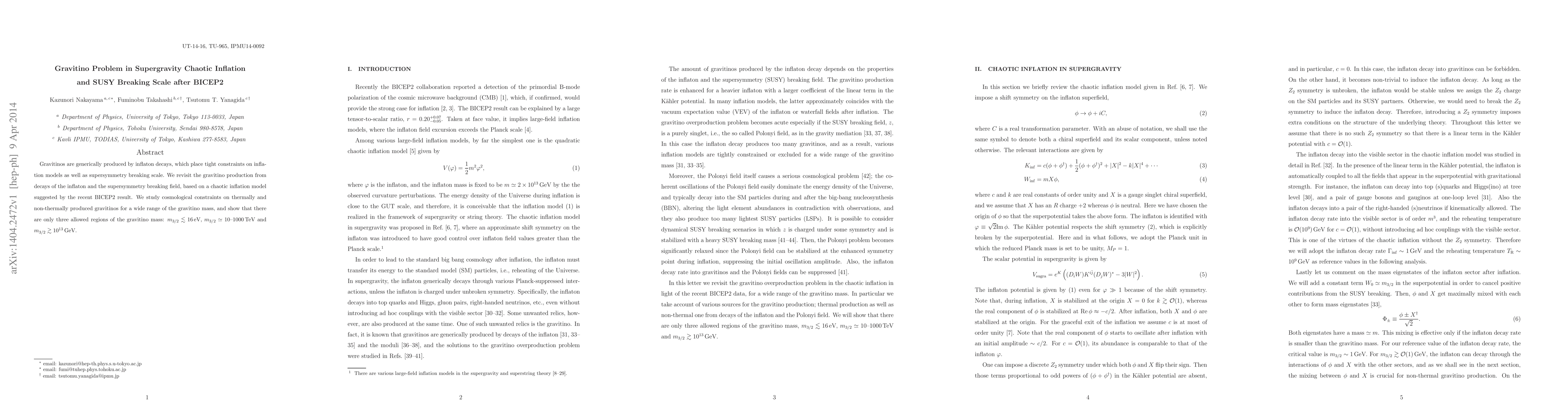 This paper examines the production of gravitinos from inflaton decay in the context of supergravity chaotic inflation, influenced by the BICEP2 result. It identifies three viable gravitino mass ranges: $m_{3/2}\lesssim 16$eV, $m_{3/2}\simeq 10$--$1000$TeV, and $m_{3/2}\gtrsim 10^{13}$GeV, under cosmological constraints.