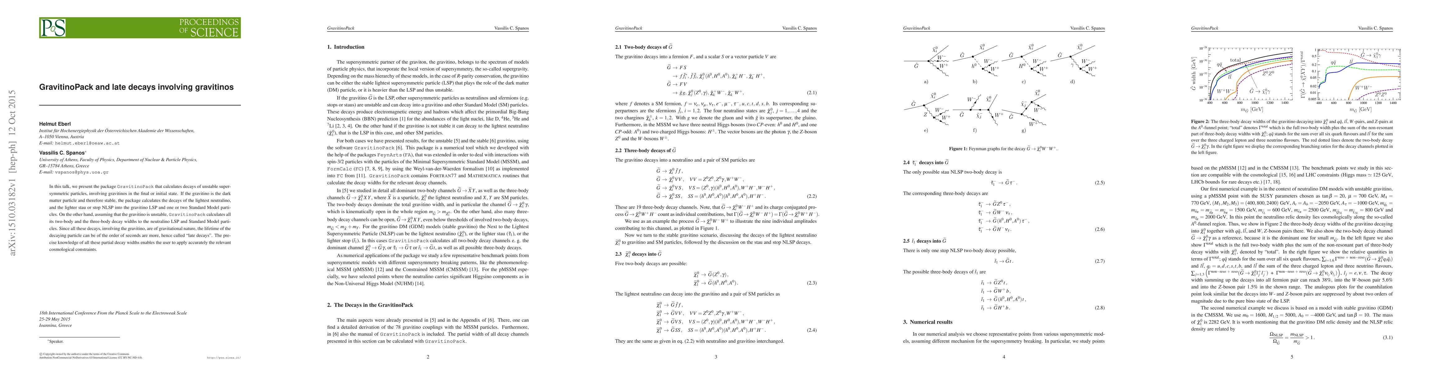 Summary: GravitinoPack is a computational tool for calculating the decay processes of supersymmetric particles involving gravitinos, whether stable or unstable. It computes "late decays" of neutralinos and stau/stop NLSPs into gravitinos, providing crucial data for cosmological constraints.