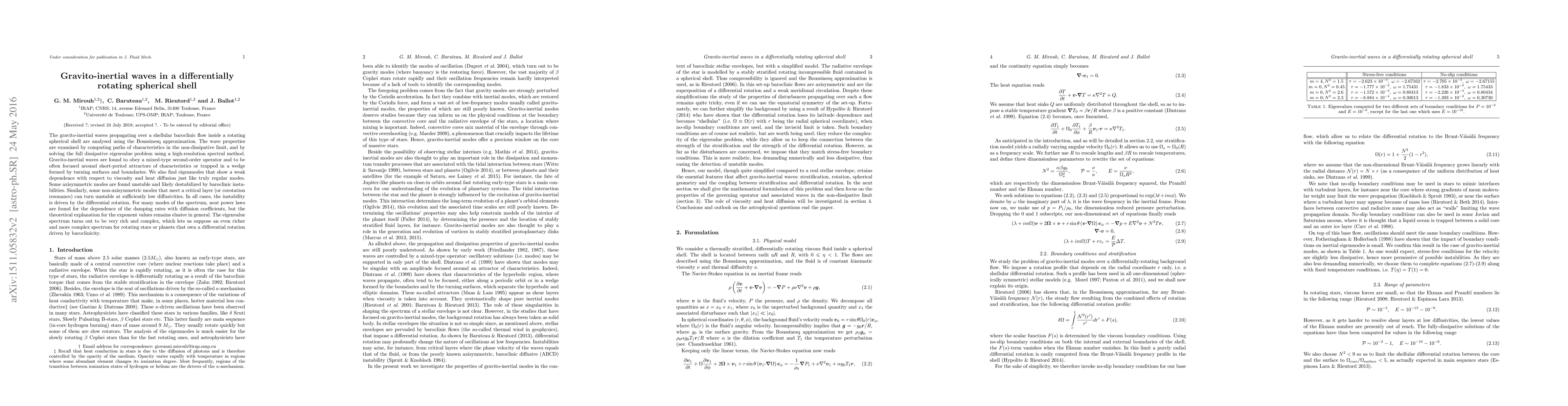 A numerical simulation method was used to study the behavior of gravito-inertial waves in a differentially rotating spherical shell.