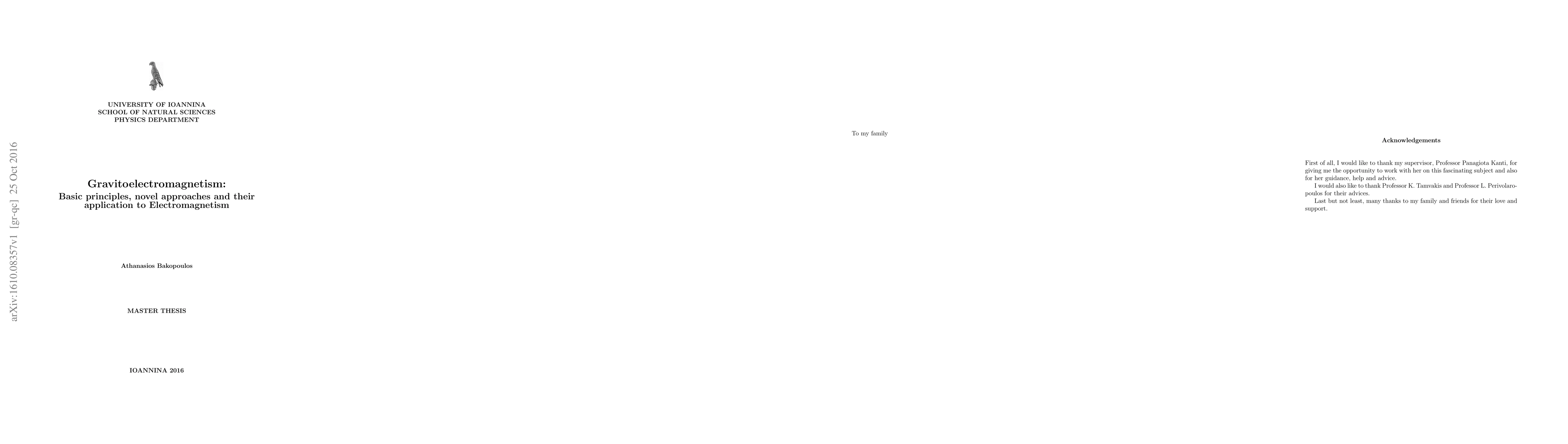 This work is focused on the theory of Gravitoelectromagnetism (GEM). In the first part of this work we present a brief review of gravitoelectromagnetism, we locate and discuss all the problems which appear in this approach. We also try to avoid these problems by proposing new approaches in which we use the additional degrees of freedom of the gravitational field. In the second part of this work, we review our previous work regarding the construction of a tensorial theory, using the formalism of General Relativity, which aims to describe the true electromagnetism. We also extend this theory in order to make it more realistic. Finally in the third part of this work, we investigate the existence of gravitational invariants similar to the electromagnetic ones.