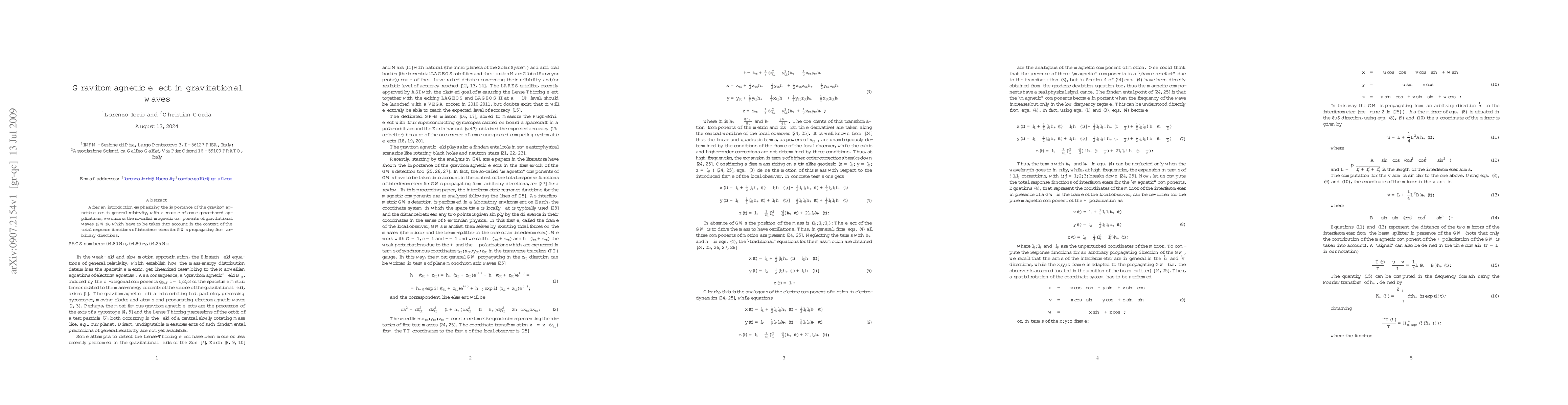 The research discusses gravitomagnetic effects in gravitational waves, focusing on magnetic components and their significance in the total response functions of interferometers for GWs from arbitrary directions.