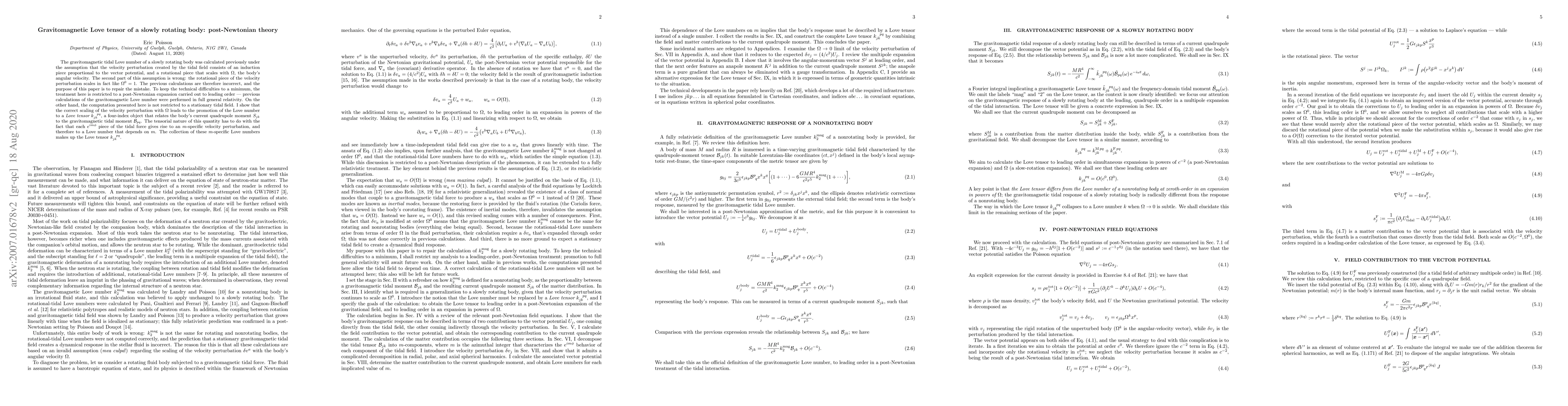 The gravitomagnetic tidal Love number of a slowly rotating body was calculated previously under the assumption that the velocity perturbation created by the tidal field consists of an induction piece proportional to the vector potential, and a rotational piece that scales with $\Omega$, the body's angular velocity. The second part of this assumption is wrong: the rotational piece of the velocity perturbation scales in fact like $\Omega^0 = 1$. The previous calculations are therefore incorrect, and the purpose of this paper is to repair the mistake. To keep the technical difficulties to a minimum, the treatment here is restricted to a post-Newtonian expansion carried out to leading order -- previous calculations of the gravitomagnetic Love number were performed in full general relativity. On the other hand, the computation presented here is not restricted to a stationary tidal field. I show that the correct scaling of the velocity perturbation with $\Omega$ leads to the promotion of the Love number to a Love tensor $k_{jk}^{\ \ pq}$, a four-index object that relates the body's current quadrupole moment $S_{jk}$ to the gravitomagnetic tidal moment ${\cal B}_{pq}$. The tensorial nature of this quantity has to do with the fact that each $e^{im\phi}$ piece of the tidal force gives rise to an $m$-specific velocity perturbation, and therefore to a Love number that depends on $m$. The collection of these $m$-specific Love numbers makes up the Love tensor $k_{jk}^{\ \ pq}$.