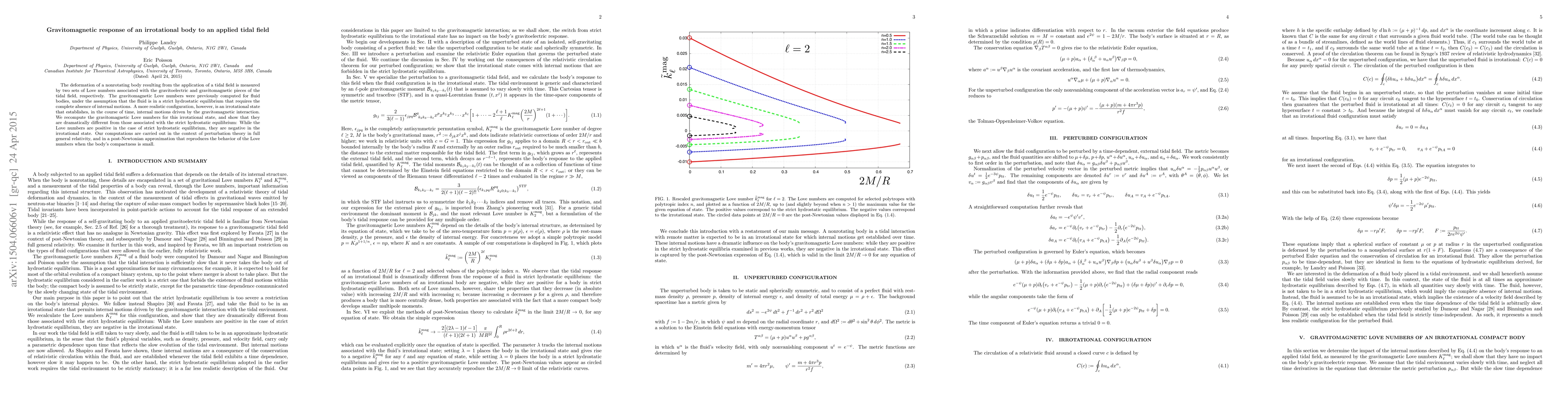 This paper recomputes gravitomagnetic Love numbers for an irrotational body under tidal fields, finding they are negative, contrasting with the positive values for bodies in strict hydrostatic equilibrium. The study uses perturbation theory in general relativity and a post-Newtonian approximation to reflect realistic internal motions.