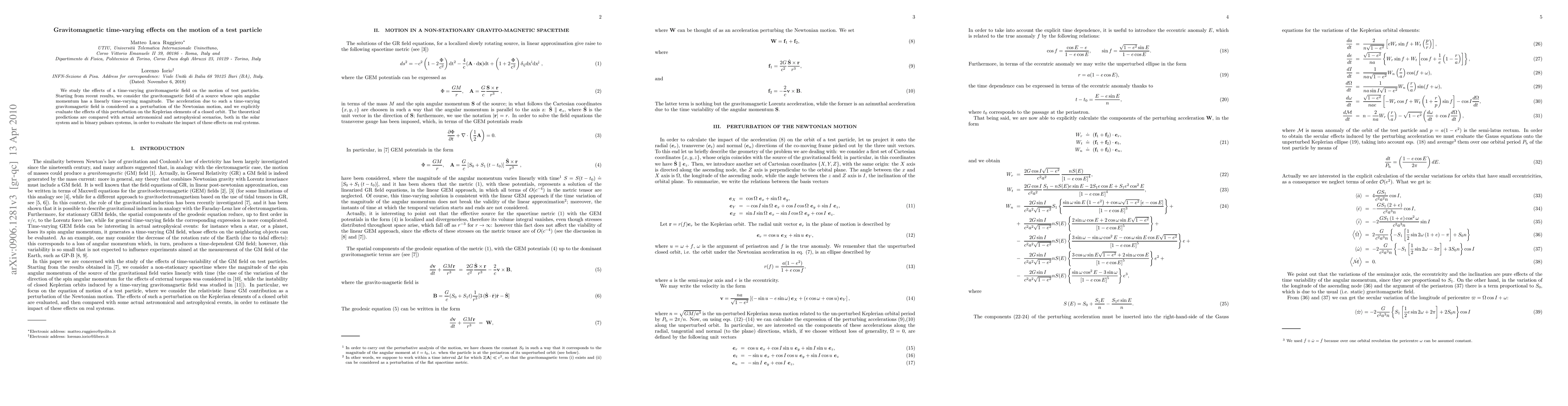 A study on how time-varying gravitomagnetic fields affect test particles' motion, with implications for real systems in the solar system and binary pulsars.