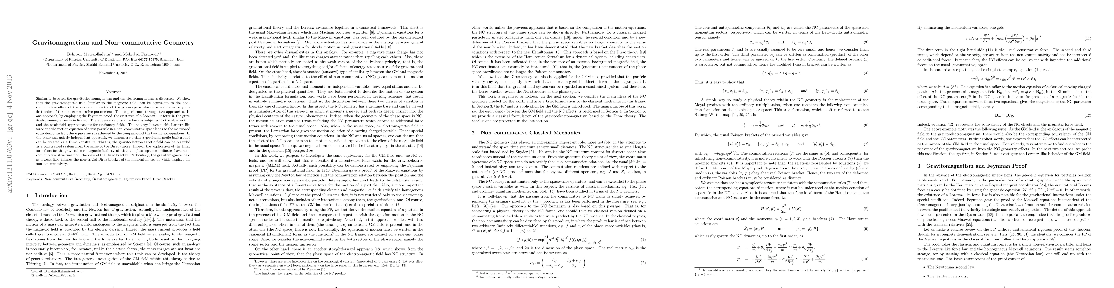 Similarity between the gravitoelectromagnetism and the electromagnetism is discussed. We show that the gravitomagnetic field (similar to the magnetic field) can be equivalent to the non-commutative effect of the momentum sector of the phase space when one maintains only the first order of the non-commutative parameters. This is performed through two approaches. In one approach, by employing the Feynman proof, the existence of a Lorentz-like force in the gravitoelectromagnetism is indicated. The appearance of such a force is subjected to the slow motion and the weak field approximations for stationary fields. The analogy between this Lorentz-like force and the motion equation of a test particle in a non-commutative space leads to the mentioned equivalency. In fact, this equivalency is achieved by the comparison of the two motion equations. In the other and quietly independent approach, we demonstrate that a gravitomagnetic background can be treated as a Dirac constraint. That is, the gravitoelectromagnetic field can be regarded as a constrained system from the sense of the Dirac theory. Indeed, the application of the Dirac formalism for the gravitoelectromagnetic field reveals that the phase space coordinates have non-commutative structure from the view of the Dirac bracket. Particularly, the gravitomagnetic field as a weak field induces the non-trivial Dirac bracket of the momentum sector which displays the non-commutativity.