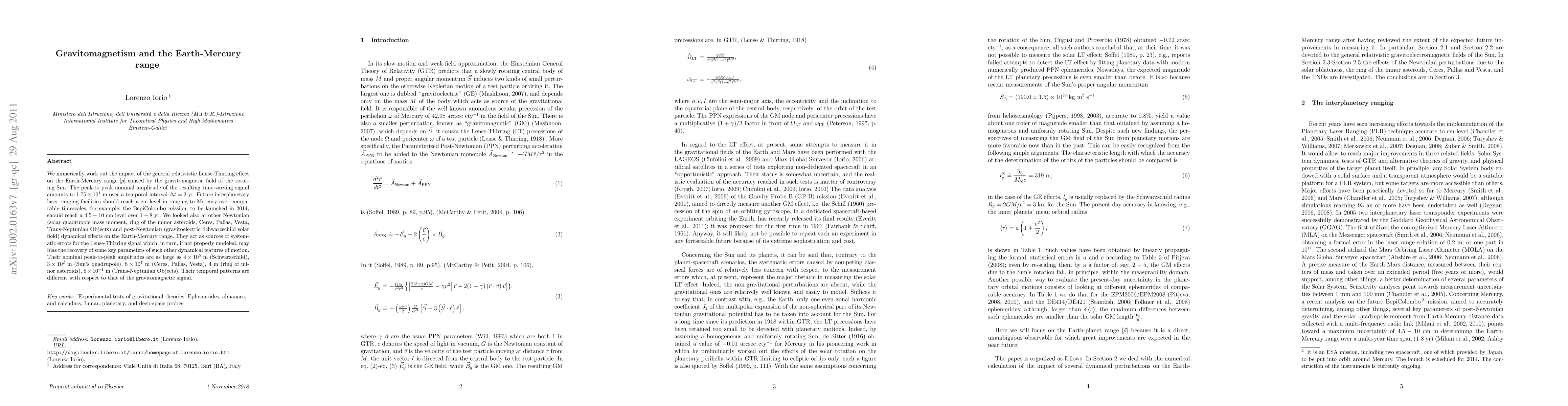 This paper investigates the general relativistic Lense-Thirring effect's impact on the Earth-Mercury range due to the Sun's gravitomagnetic field, predicting a peak-to-peak amplitude of 1.75 x 10^1 m over two years. It also examines other Newtonian and post-Newtonian effects that could introduce systematic errors, with amplitudes ranging from 4 x 10^5 m to 8 x 10^-1 m, affecting the precision of future interplanetary laser ranging missions.