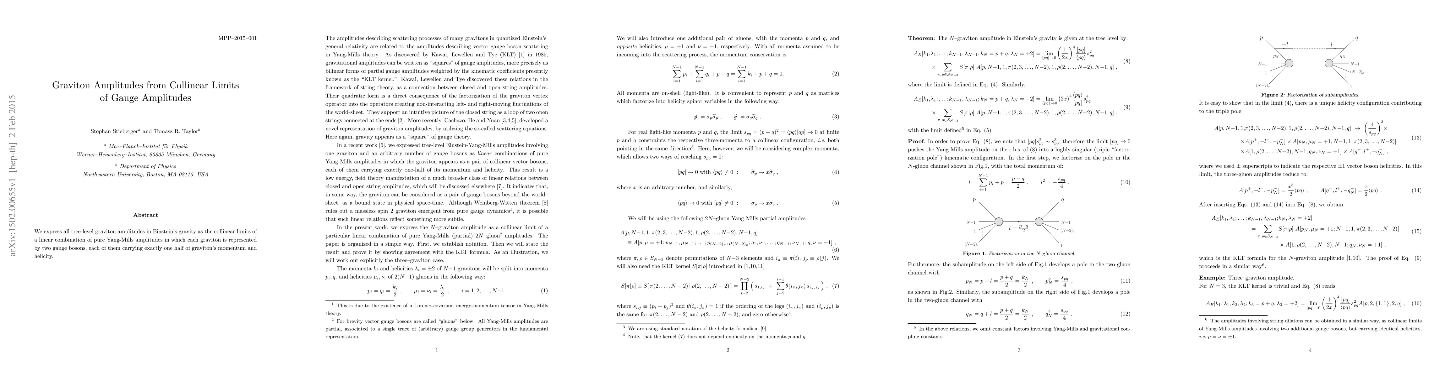 This paper presents a method to represent all tree-level graviton amplitudes in Einstein's gravity as combinations of collinear limits of pure Yang-Mills amplitudes, where each graviton is depicted by two gauge bosons, each carrying half the graviton's momentum and helicity.
