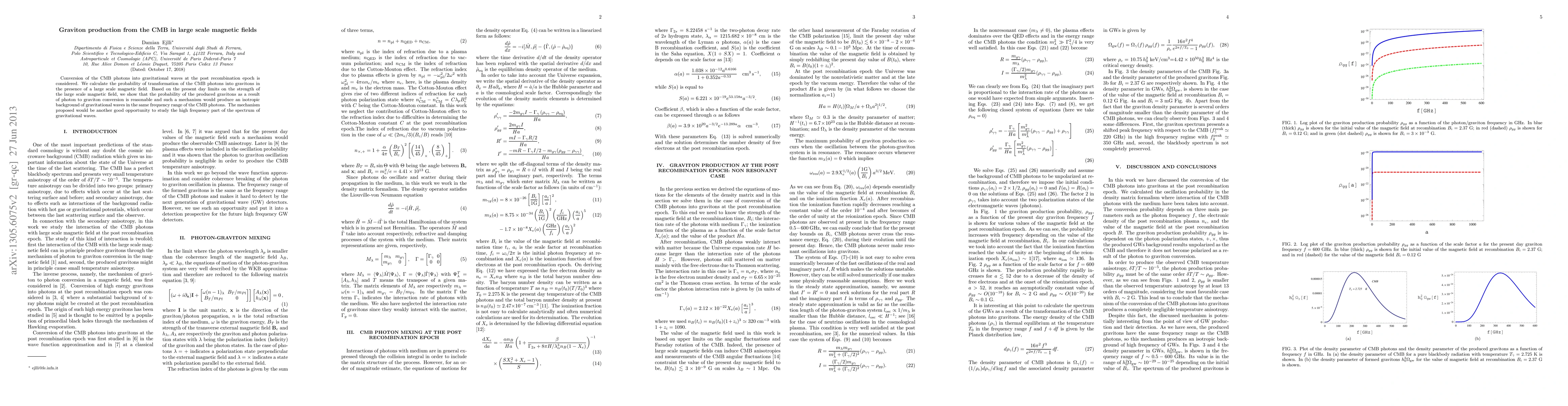 This paper investigates the conversion of cosmic microwave background (CMB) photons into gravitons in the presence of large scale magnetic fields, finding that the probability of such transformation is feasible given current magnetic field strength limits, potentially generating an isotropic background of gravitational waves. This mechanism offers a promising avenue for exploring the high-frequency spectrum of gravitational waves.